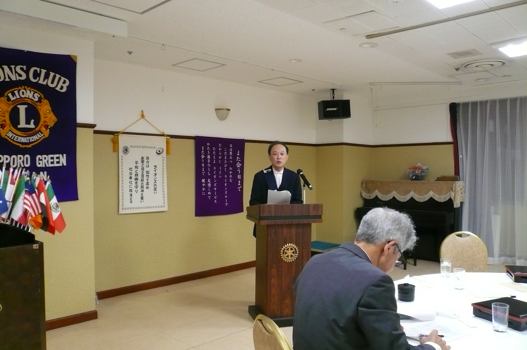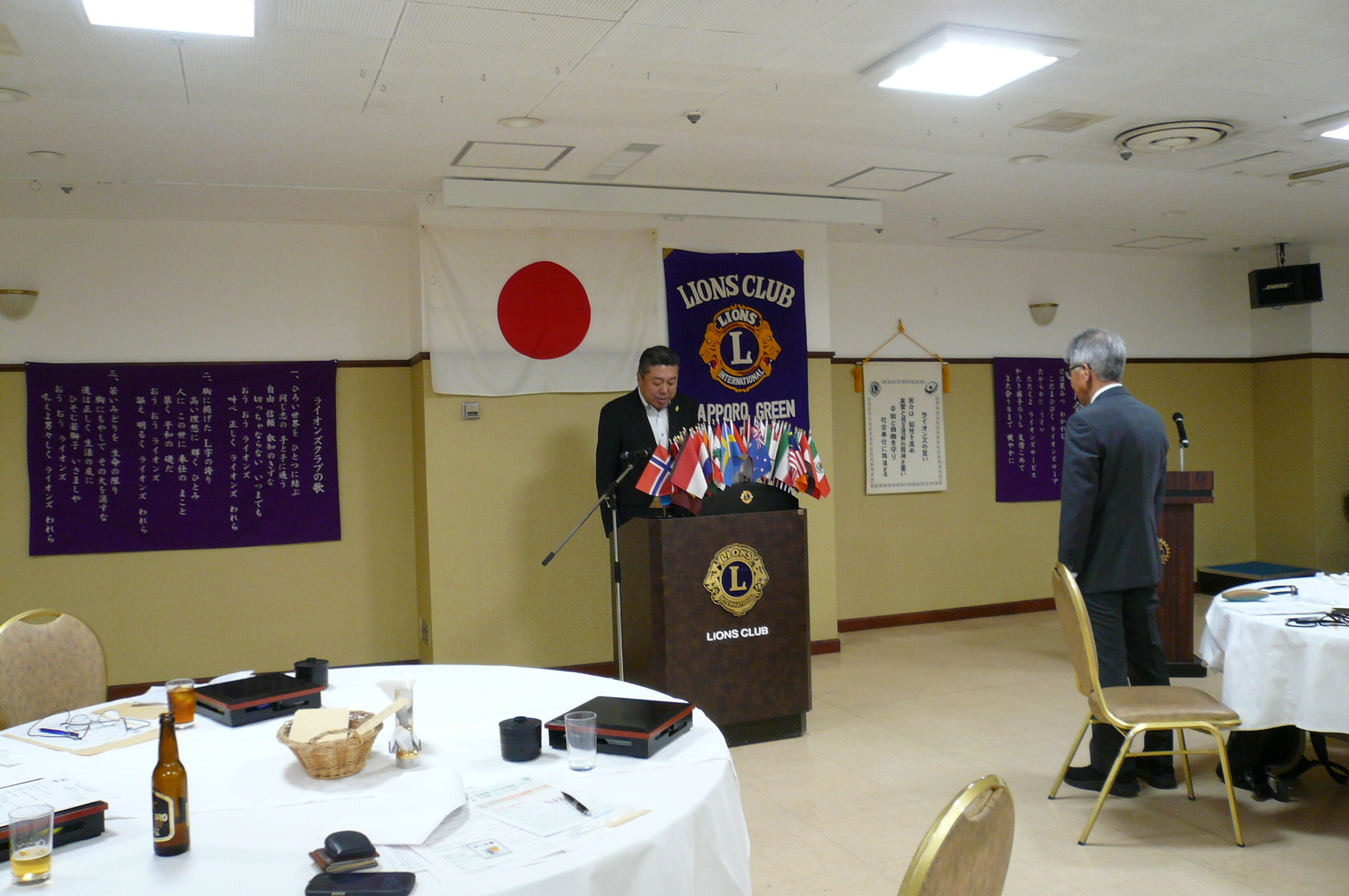 札幌グリーンライオンズクラブ4月第1例会 (通算第735回 次期役員選挙例会) 会長スローガン 現状を把握してウィサーブ 2026年4月10日(金)18:15於:三越4階ライラック 1.開会ゴング並びに会長挨拶 2.国歌「君が代」並びに「ライオンズクラブの歌」斉唱 3."ライオンズの誓" 4.審議事項 1)札幌ノースLC(環境保全セミナー)合同例会決算報告について 環境保全委員長L工藤 修 2)花見例会4/24予算案について 環境保全委員長L工藤 修 3)来期キャビネット役員について 会長 L甲斐 聡 4)第72回複合地区年次大会代議員の選出について 幹事 L大塚周雄 5)第72回地区年次大会開催記念 公益財団法人日本ライオンズ 会長 L甲斐 聡 5.札幌パイオニアLCチャリティワインパーティーの御礼について 会長 L甲斐 聡 6.札幌大通LC CN35の御礼について 幹事 L大塚周雄 7.331A地区 MJF寄付の御礼とガバナーピンの授与 会長 L甲斐 聡 8.次期役員について 次期役員指名委員長 L浅水 正 9.幹事報告 幹事 L大塚周雄 1)「第72回地区年次大会」献血の協力について 2)札幌大通LC CN35出席の報告について 3)札幌創成イーストLC CN出席報告について 4)札幌白石LC チャリティー例会「ALL SHIROISHI NIGHT」開催について 5)第72回地区年次大会開催記念 公益財団法人日本ライオンズチャリティー 6)第3回LCIF写真コンテスト応募について 7)第72回地区年次大会 4/6部会打ち合わせ報告について 8)第108回香港国際大会 頒布品について 10.その他 11.テール・ツイスタータイム テール・ツィスター L山田一男 12.出席率の発表 会員委員長 L浅水 正 13."また会う日まで"斉唱 14.ライオンズ・ローア並びに閉会ゴング 会長 L甲斐 聡 |