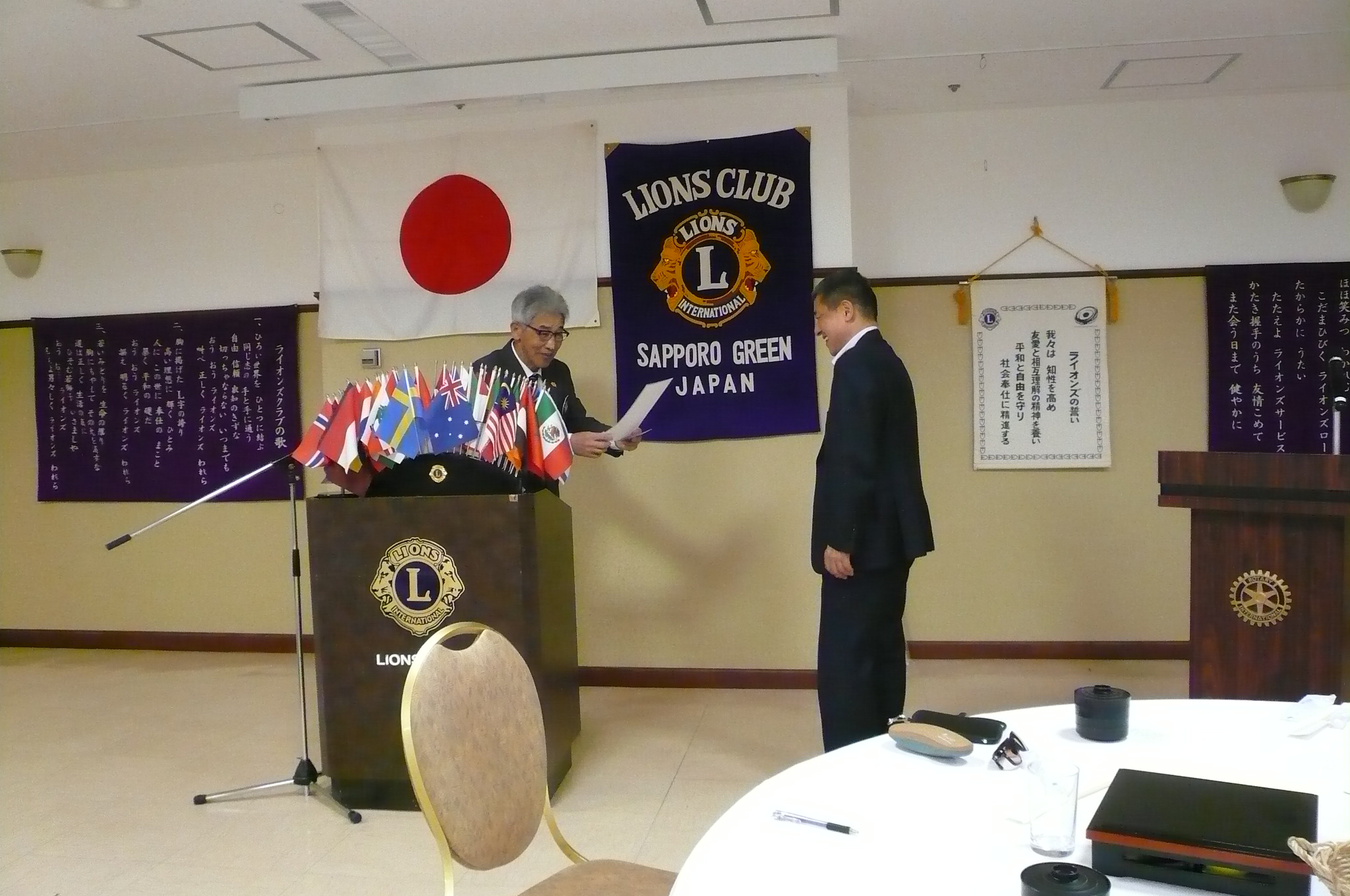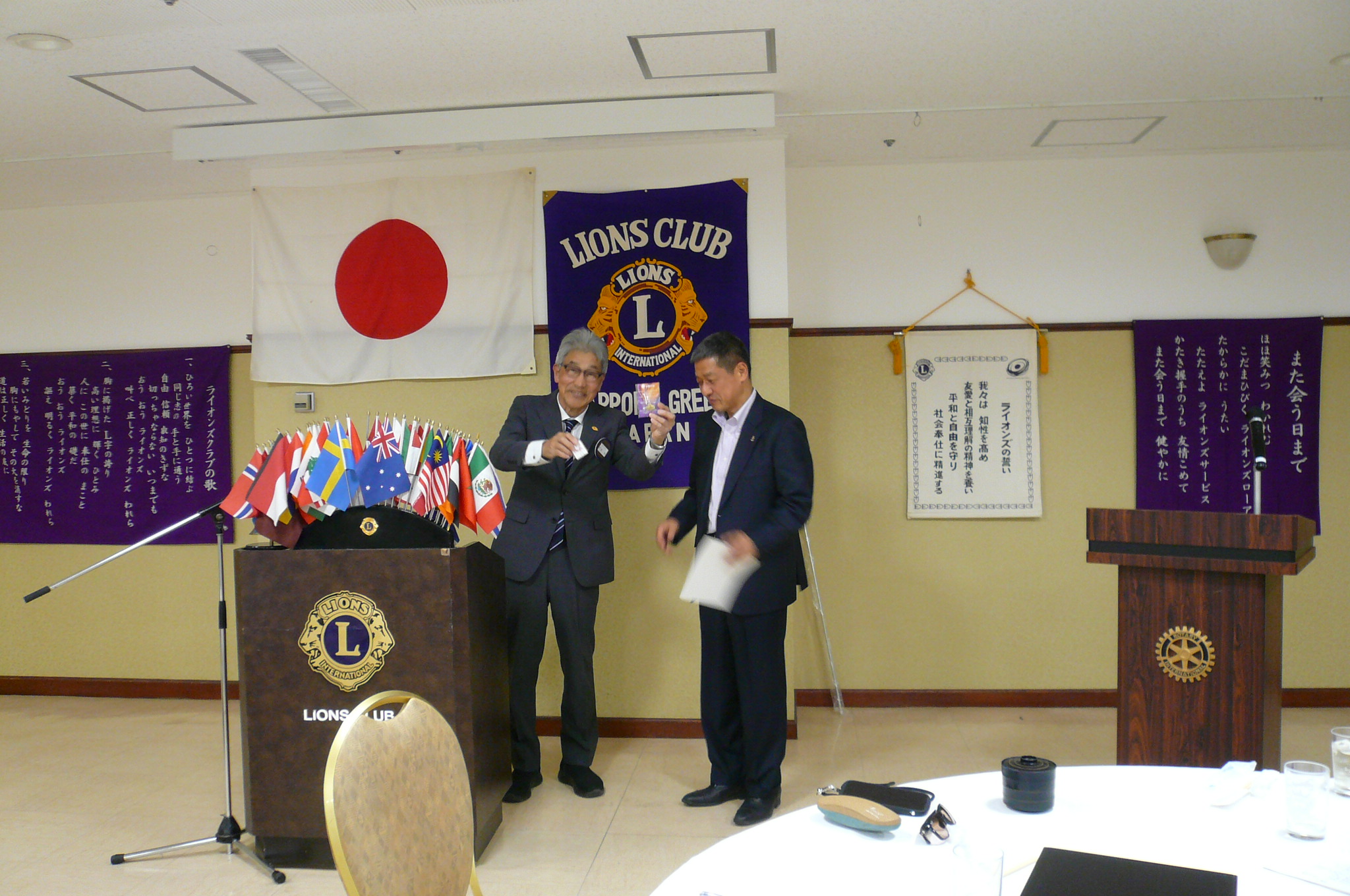 地区ガバナーピンの授与 L帆先 |
