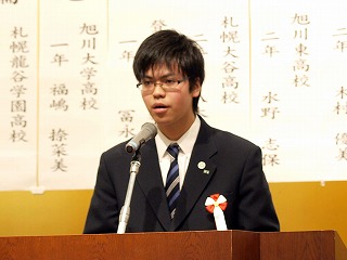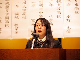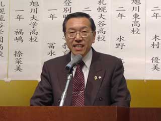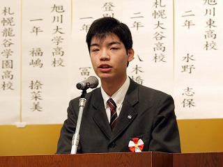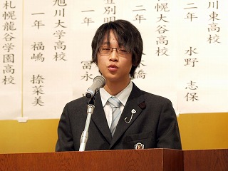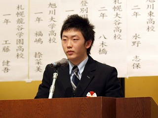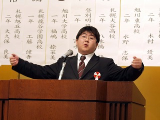 今年も運営にあたって後援、ご尽力下さいました、北海道新聞社、北海道高文連石狩支部弁論専門部の先生はじめ関係各位に心から御礼を申し上げます。 |