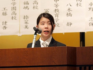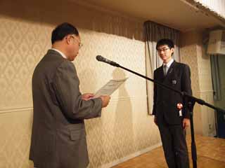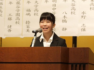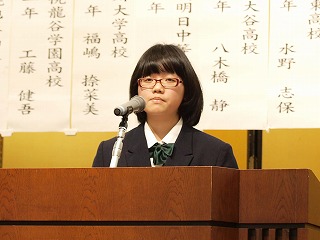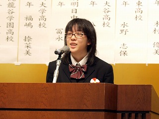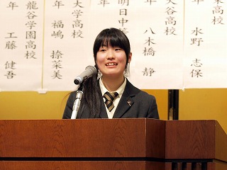 | 最優秀賞受賞者に賞状と楯を授与 馬 寧君(立命館慶高校 1年) |