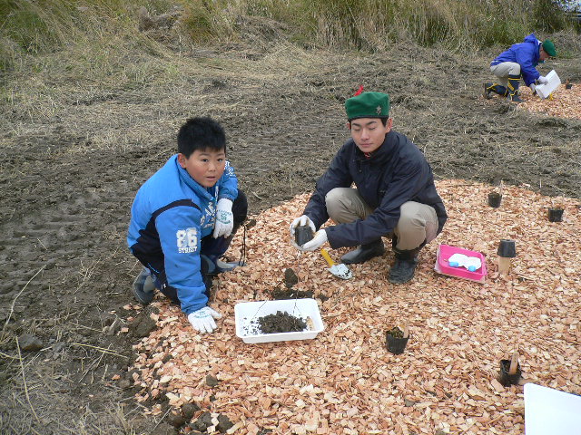 10月28日(日)NPO法人茨戸川環境市民フォーラム主催「ゴミを拾って植樹をしよう!自然を再生しよう!」に札幌グリーンライオンズクラブ4名とボーイスカウト札幌第12団15名が参加しました。気温低く、風もあり雨模様の天気でしたが皆さん元気に植樹とゴミ拾いに精を出しました。