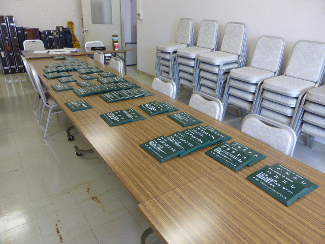 8/30午後1時ライオンズクラブ合同事務所に集合、樹名板にワイヤーを所定の長さにCutし取り付け、袋詰め準備完了。2時~3時、L甲斐 聡会長、L帆先 久和幹事、環境保全委員会メンバー、事務局員そして会長のお嬢さんで取り付け。3時~4時半 5年前から設置した樹名板の点検・補修・清掃を行いました、樹名板は殆んど取り付けた状態で管理されており安心しました。緑の中に緑の樹名板、これが意外と目立ちメンバー自画自賛、公園を散歩する市民・観光客など皆さん関心持ち観察しており5年間かけ実施したACT、大変良かったと自負しております。