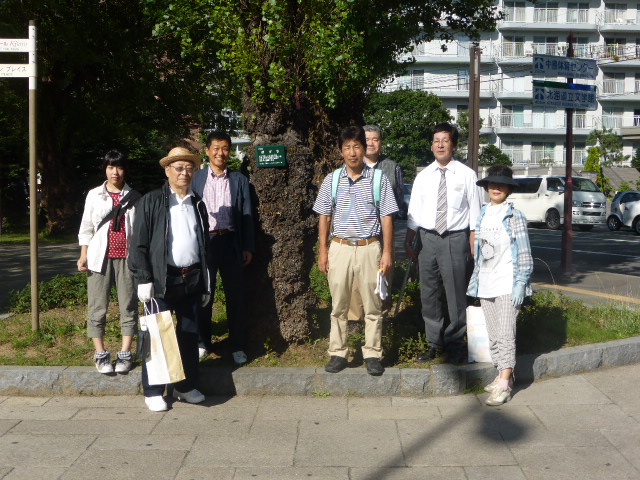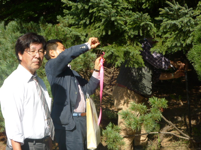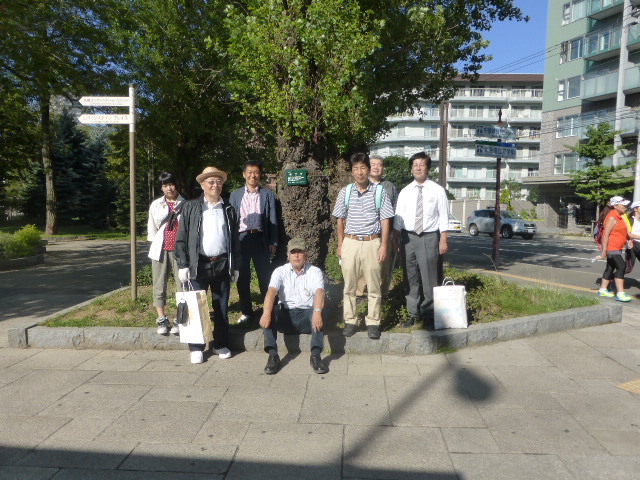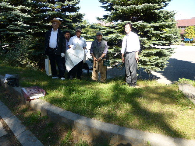 8/1に今年の樹名板取り付ける樹木を調査し、目印に赤テープを木に結ぶ。52枚の樹木に取り付けることとし、札幌市緑の課へ申請後メーカーに発注した。