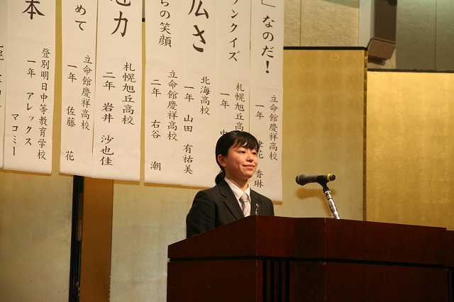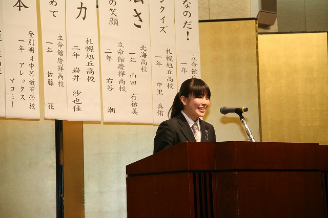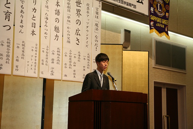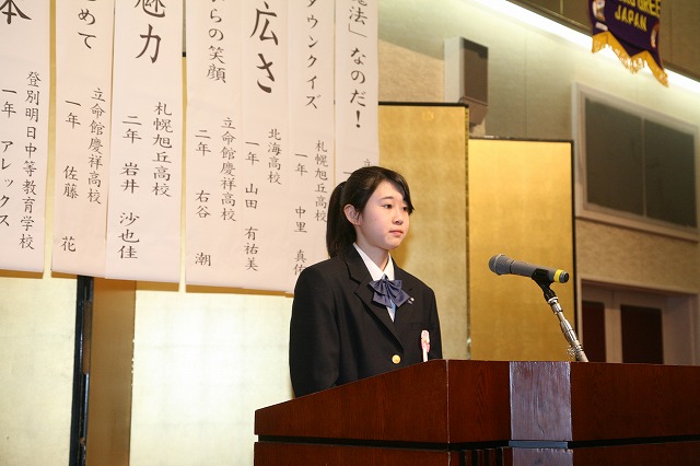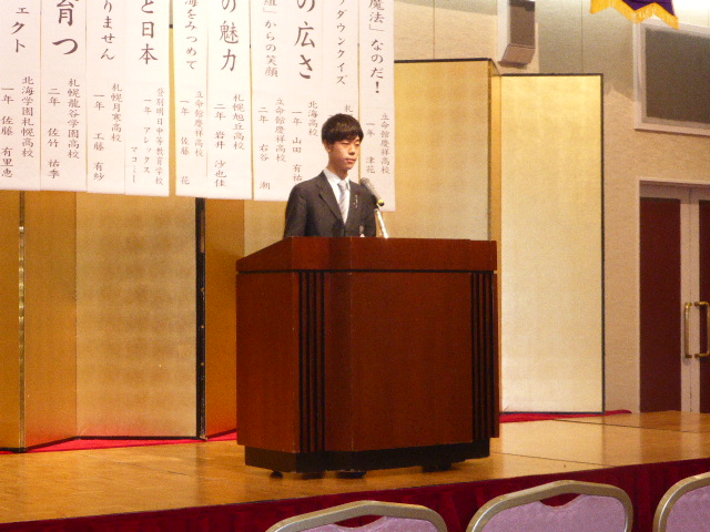 青少年発表会は10人の弁士が登壇。昨年までこの大会に数校参加して戴いた旭川地区が地元開催となり、発表者数は減りましたが会場を包むピリッとした緊張感や熱気は変わらず。各人が大会規定である7分以内の時間に想いを込め発表しました。