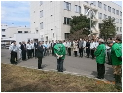 去る4月26日「国立研究開発法人土木研究所 寒地土木研究所」(以下寒地土木研究所)にて千島桜記念植樹に参加しました。クラブのモットーである「緑を愛し地球環境を大切に!」の基本理念に基づき市民に緑を増やし親しんで欲しいとの想いと、千島桜並木を擁する寒地土木研究所がそれを「地域の宝物」として活用したい想いが合致。緑化に関わるプロジェクト推進に寄与することを目的に「千島桜基金に関する覚書」を平成27年に結び具体的な活動を行って参りました。今年は寒地土木研究所が創立80周年となりその記念事業として記念植樹を行う事となりました。寒地土木研究所職員約30名、緑の法被を着たクラブメンバー9名が見守る中、鎌田所長・岡田会長にご挨拶を頂き、構内千島桜から種子採取し3年掛け50p程に育てた苗木2本を紅白テープで巻いた真新しいスコップで植え付けし式典終了。「研究所の種を後世に残したい」と鎌田所長がご挨拶の中おっしゃられましたがまさに同感。昨年北区新川沿いに植えた千島桜苗木共々、風雪に耐えながらも春になれば花を咲かせ愛でる人々の心をなごませ、元気を与えるべく逞しく成長して欲しいと願ったACTでした。