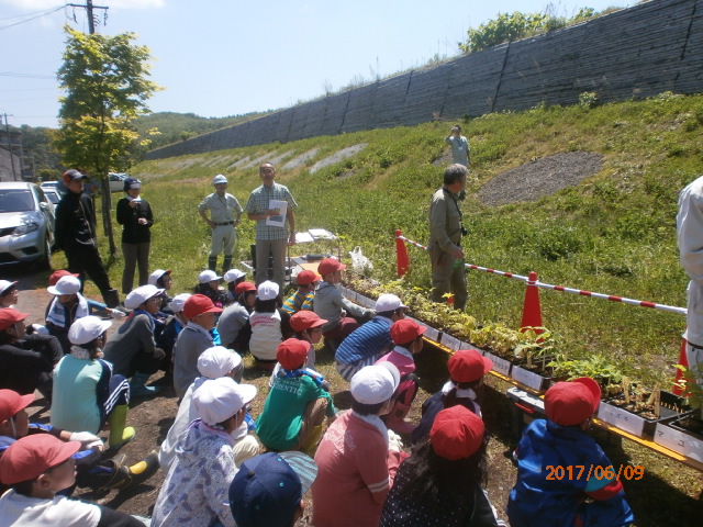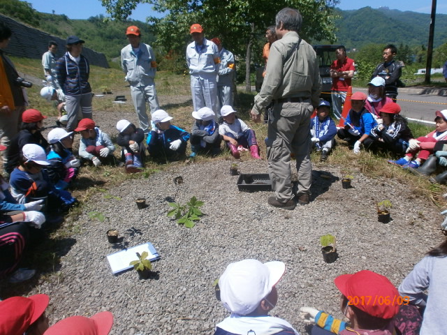 6月9日(金曜日)洞爺湖温泉小学校にて行われた首記ACTにL比護、L山田、L工藤3人で参加。屋外ACTであり、数日来ぐずついた天候が続いていたので"空模様"を心配しましたが、5月の千島ザクラ桜無料頒布ACTに続き好天に恵まれ、誰か分かりませんが「晴れ男」のお蔭です。 2000年有珠山噴火により火口から発生し熱泥流が国道に掛かった橋を押し流したり、町営温泉や図書館を破壊・堆積。多くの被害を被りました。一定期間毎に噴火を繰り返す有珠山。過去教訓を基に避難がスムースに出来る様色々な安全対策を講じているそうです。その一環として小学生達に町の歴史を教えつつ防災の心構え・郷土愛を育む活動と受け止めました。 「緑はどうなった」授業は今年で13年目。湖があり川があり山がある自然豊かな場所に防災施設である"砂防ダム"がこれ見よがしに造られています。この砂防ダムの廻りを植樹して森を創りダムを隠し、防災と景観の調和を図りたいというのがこの活動の発端と伺いました。更に植樹する樹木は湖の周りに育っている木から種を採取する事にこだわり外来種は一切なしとの説明でした。ヤマモミジ・ミズナラ・エゾヤマザクラ・・・20種類の苗を児童35人とボランティア、グリーンライオンズメンバーが植樹しました。5年後、10年後、20年後・・・苗達・子供達がそれぞれ成長し、素晴らしい環境・素晴らしい大人になって欲しいと願いました。 |