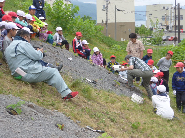 洞爺湖温泉小学校での「緑はどうなった?」授業 参加報告 実施日時:2018年6月8日(金曜日)9:00〜 2015年、寒地土木研究所と札幌グリーンライオンズクラブとで立ち上げた「千島桜基金」活用の一環である「緑はどうなった?」授業に参加。2000年に噴火した有珠山。噴火に伴う火山泥流で多大な被害が発生しましたが犠牲者はゼロであった。いつ来るか分からない再噴火に備え次世代に防災意識醸成、そして泥流堰造成時に伐採した木々達を再び種から育て苗を小学生と 共に植樹し、自然豊かなこの地域に相応しい緑の森に再生したい想いのもと十数年続いている取り組みです。我がクラブ理念に沿い秋に行う木々の種採取から今回の植付けまで「苗育成」に関わる費用を「千島桜基金」より支援をしています。 |