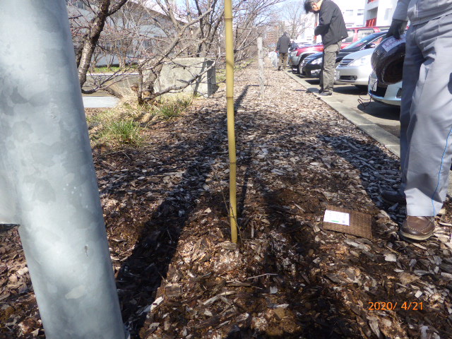 構内で枯れてる木に代えて、グリーン農園の苗木を補植する。