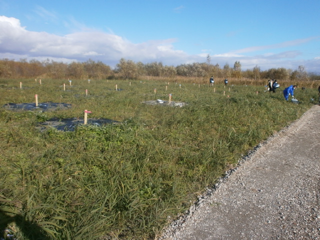 | ヨシが既に伐採され48ヶの植樹サークルが造成されていました。 |