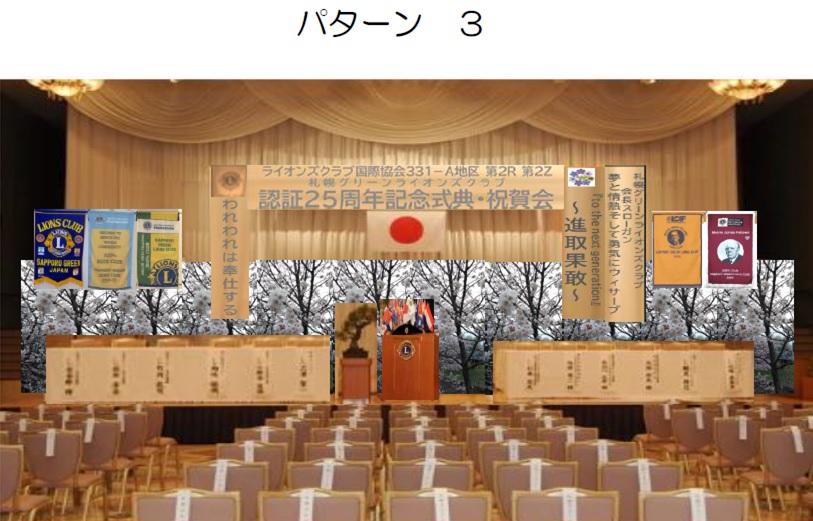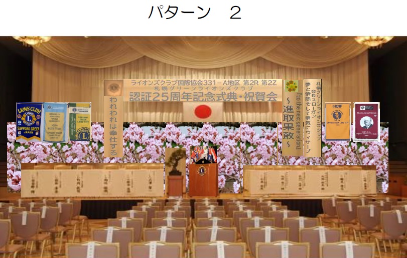 "こういう風に行うんだ・・・"と分かったと同時に、L岡山が中心になって考えた進行やチシマザクラをあしらった10数枚に及ぶステージバックパネル、加えてCN10から続く4枚のMJFフラッグ。結果的にコロナ感染により日の目を見なかった訳ですが、自席からステージを見て感慨深いひとときでありました。 |