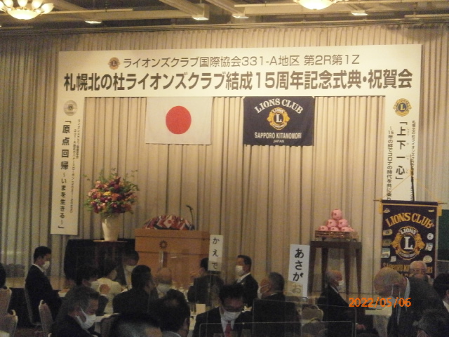 5月6日「北の杜LC CN15」記念式典にL高野・L大塚と共に出席して来ました。場所は京王プラザホテル。奇しくも我クラブがCN25を行おうと予約準備していたホテル。過去、他クラブCN記念式典に出席した事は無く初めて。今回招待者は200名位と聞きました。