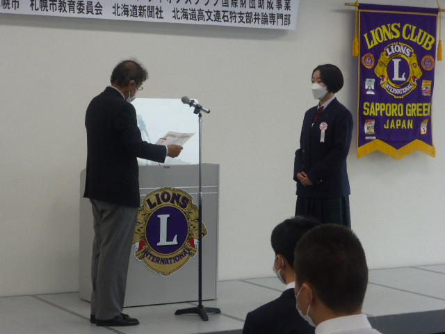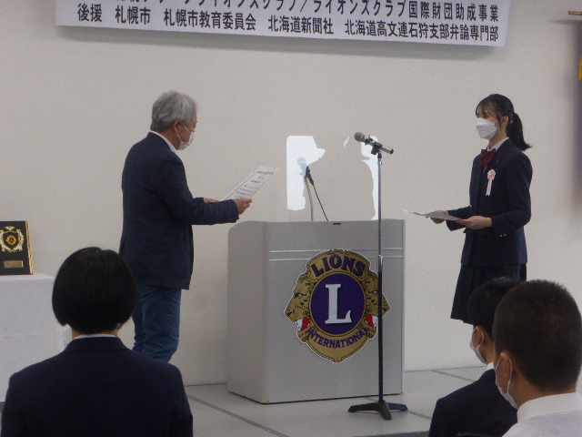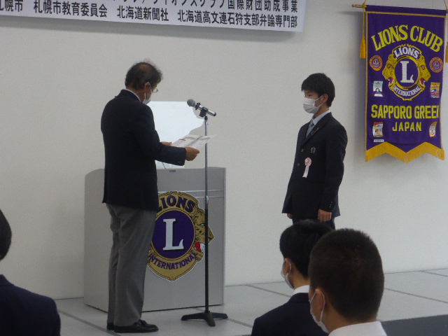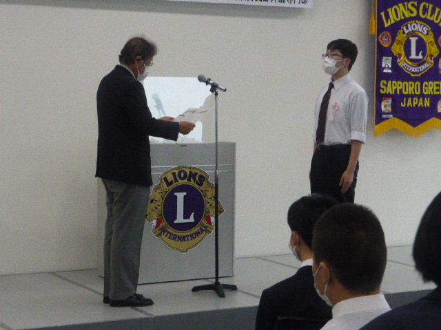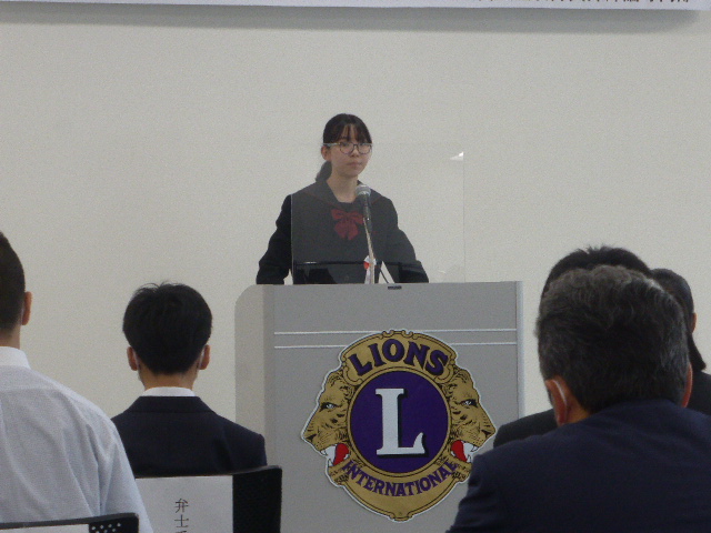 学校の進級年度とライオンズクラブの事業年度にずれがあるため、今回は1年生から3年生まで参加がそろいました。(例年は1年生・2年生のみ) 9名の弁士、それぞれが熱弁を奮い素晴らしい発表でした。表彰は、最優秀賞・優秀賞・優良賞・特別賞の4名だったのですが、7名の審査委員による審査の結果、第2位から6位までの得点差はなんと0.8点差(100点満点)という大接戦。これは、全体のレベルが相当上がっていると思われます。