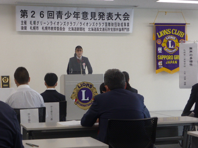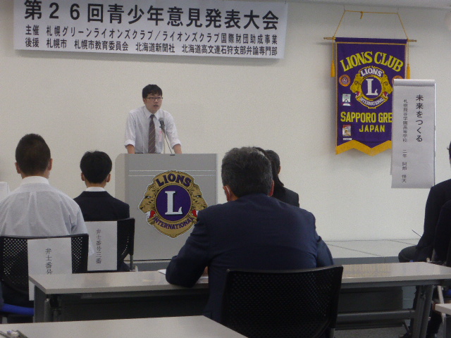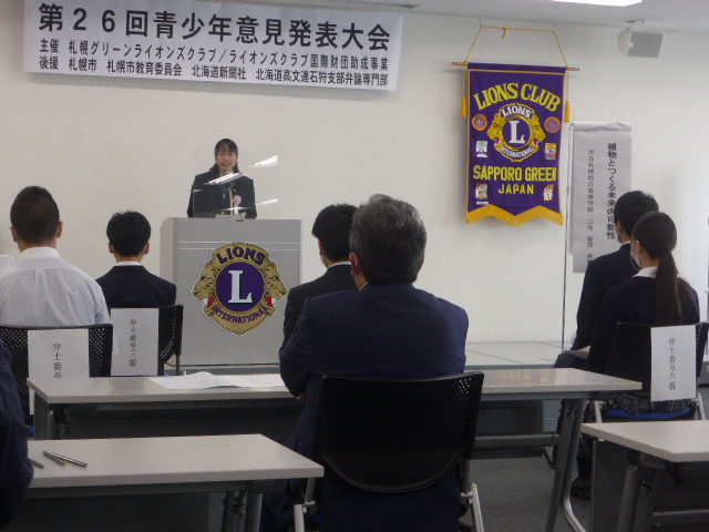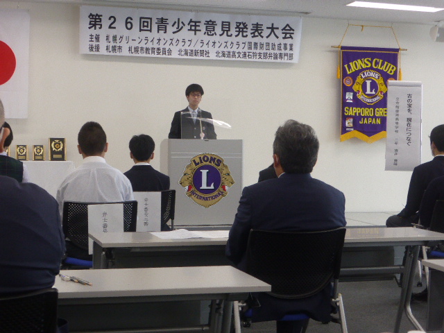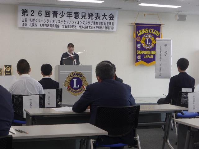 6月19日AM9:00から札幌駅直通の「アステイ45」16階において札幌グリーンライオンズクラブ主催の第26回青少年意見発表大会を開催いたしました。