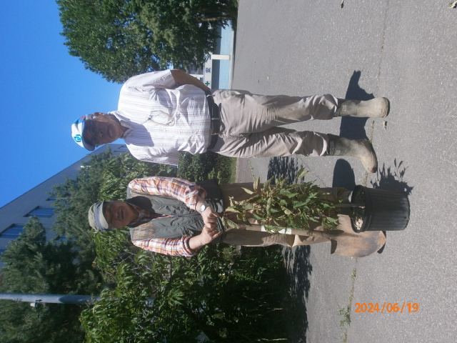 平地で咲く桜としては国内最後に開花するチシマザクラ。豊平区の通称「寒地土木研究所」が40年前浜中町霧多布から200本を取り寄せ構内に移植。4月下旬の開花に合わせ"桜を愛する市民"に構内開放しています。我クラブでは構内のチシマザクラから採種・苗木に育て、構内開放に合わせ希望者に頒布するアクティビティを実施。その苗木になる種採りを6月19日行いました。参加ライオンはL比護・L堀束・L山田・L工藤の4名。「今年の採種数、ここ数年より多い」と現地でL比護談。その後L比護が果肉と種の選別作業するため自宅に持ち帰り。「今年のタネの品質良い!」との連絡。タネ写真見る限りひいき目かも知れませんが、確かにしっかりしたタネに見えます。多くの「タネ」達が元気に発芽して欲しいと願う処です。併せて今回約80pに育てた苗木2本の構内補植も行いました。