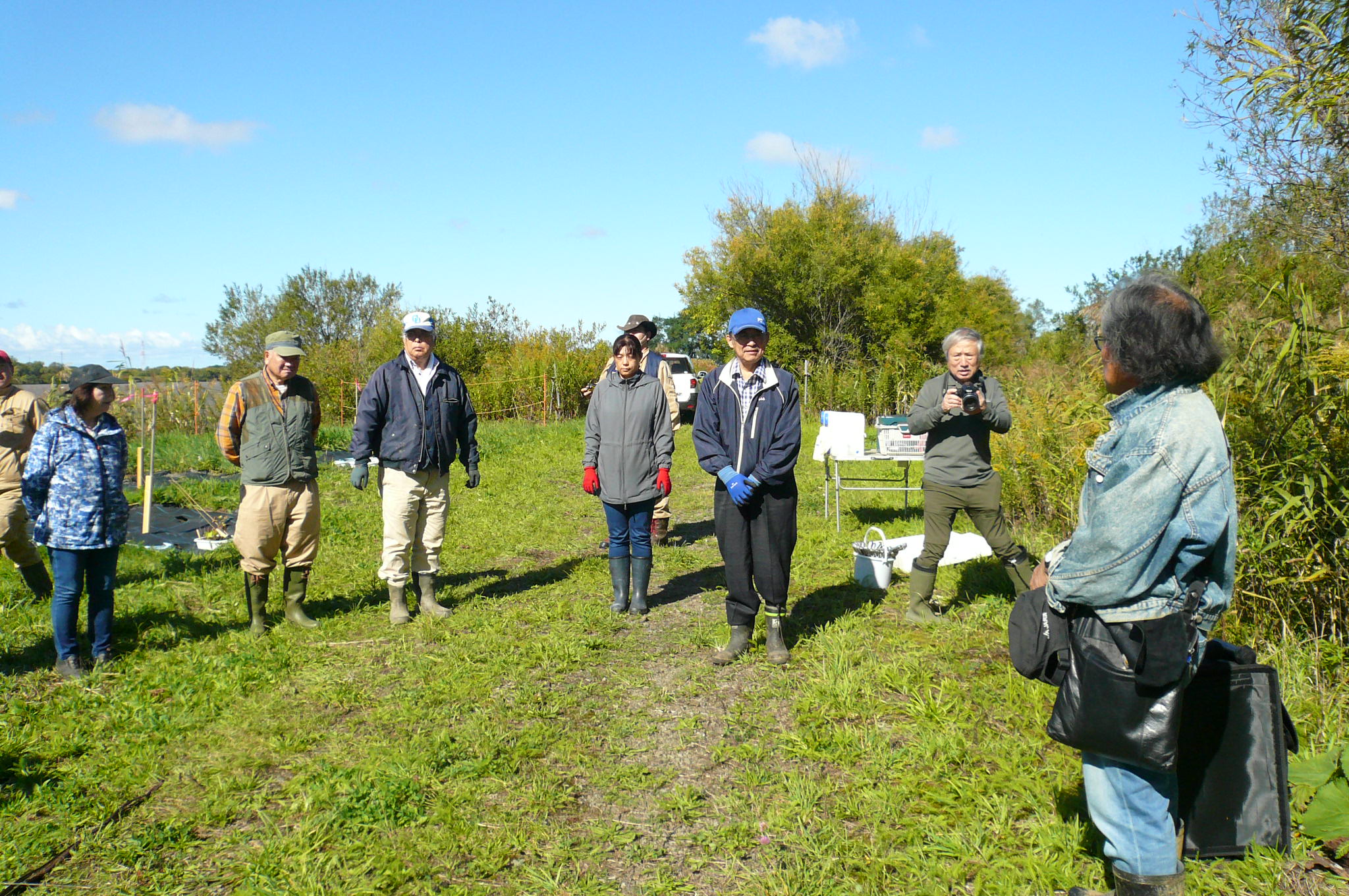 10月5日(土)石狩川畔自然再生植樹アクティビティをいたしました。L3名・LL2名・事務局他9名の計14名で行いました。前日の大雨と強風で心配していましたが、当日は秋晴れとなりました。雨の恵みと、事前に作業工程を準備していただいたおかげで、土が柔らかく作業が早く進みました。今年は1サークルに8本の苗木で、計14サークルに112本植樹。苗木が森になりフクロウ・チョウザメがいた100年前に戻す自然再生アクティビティです。