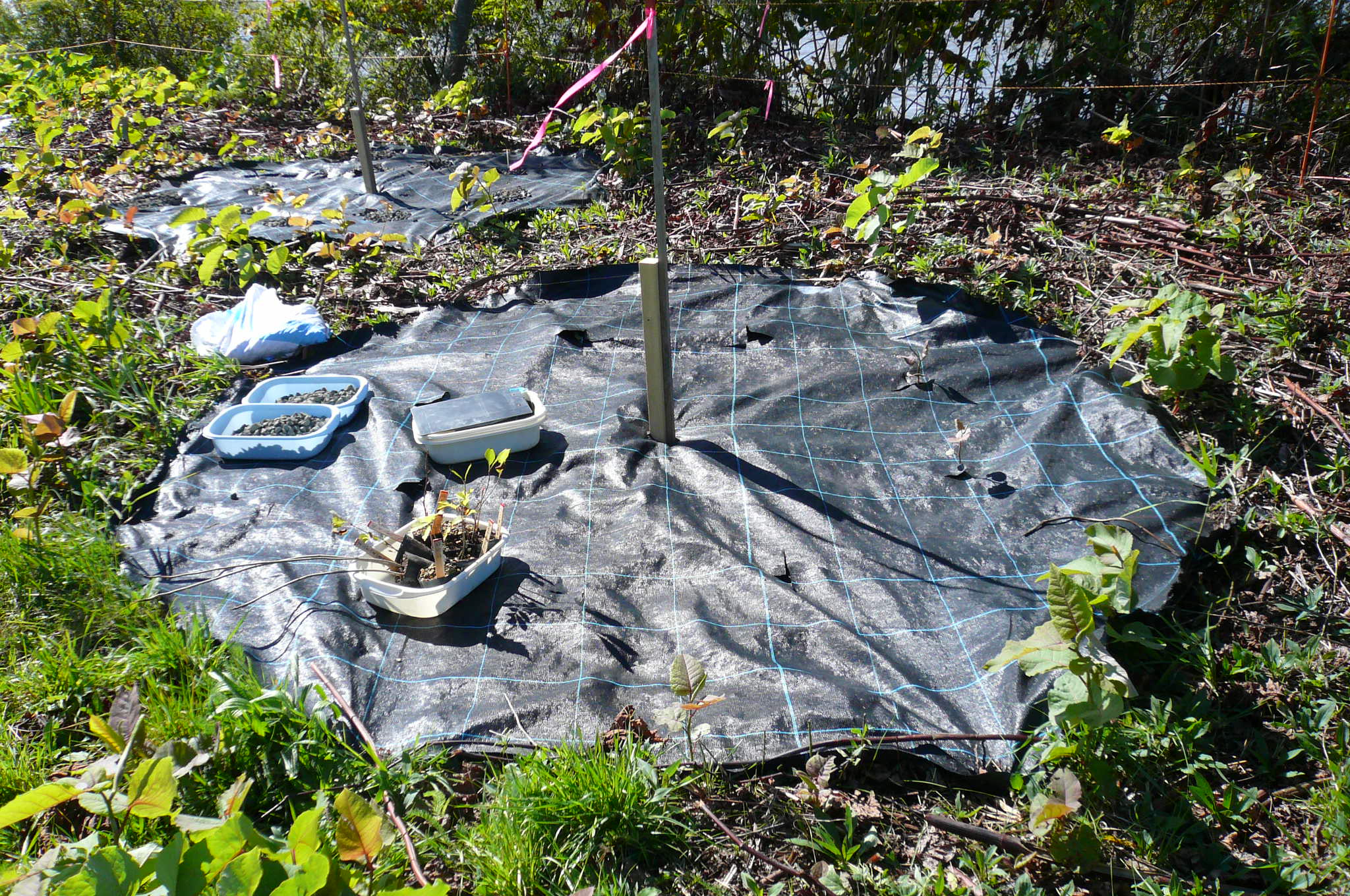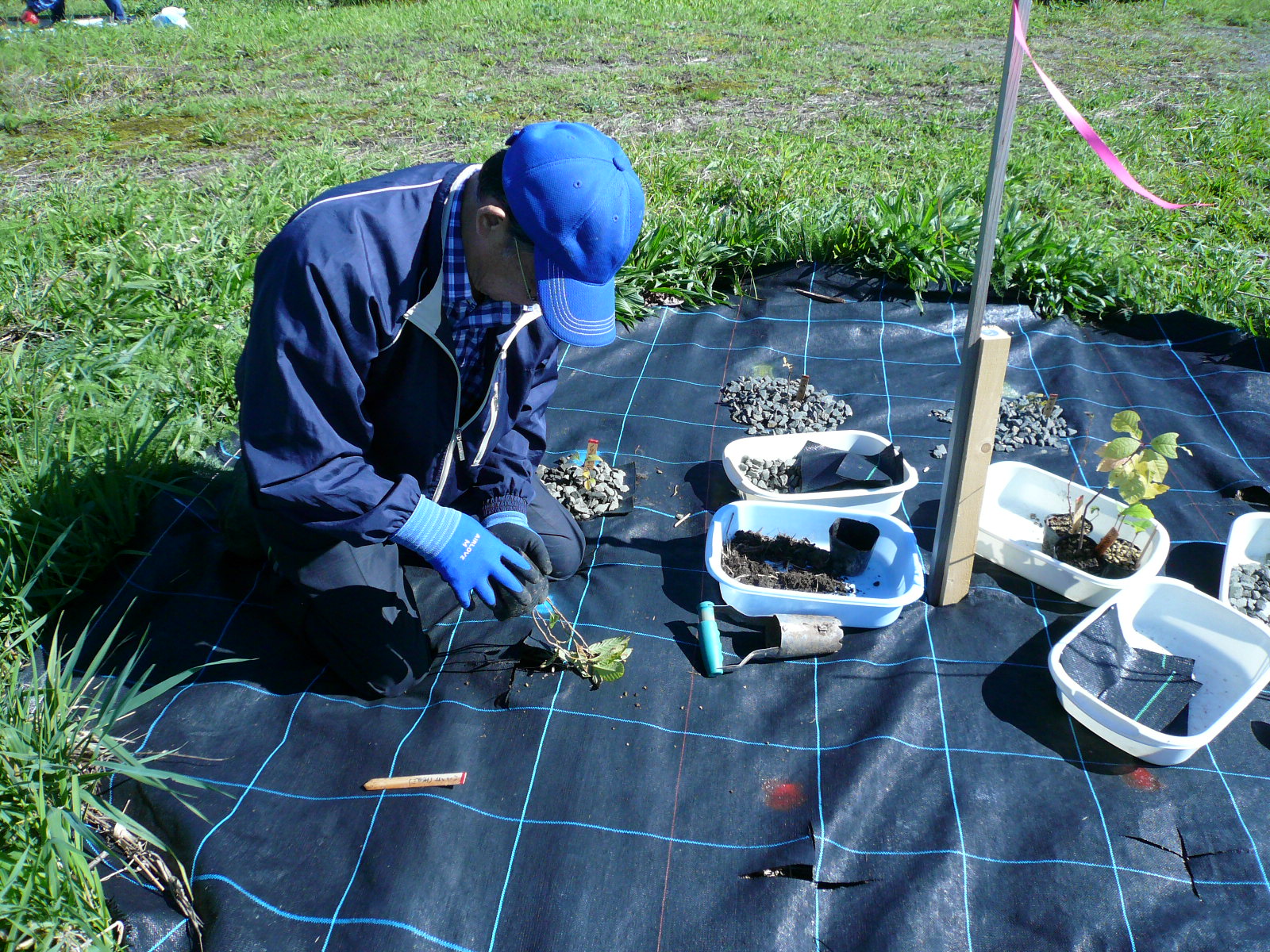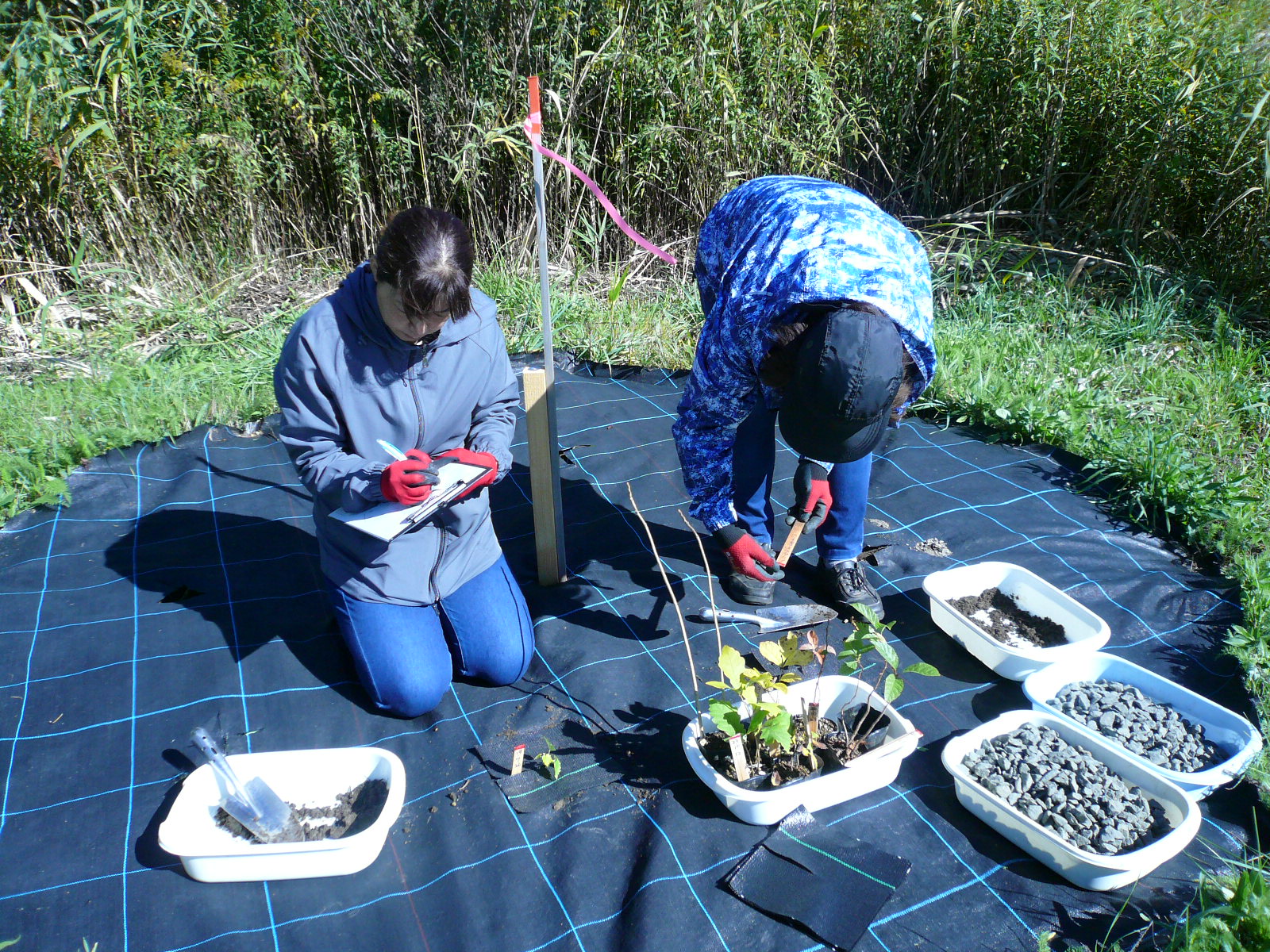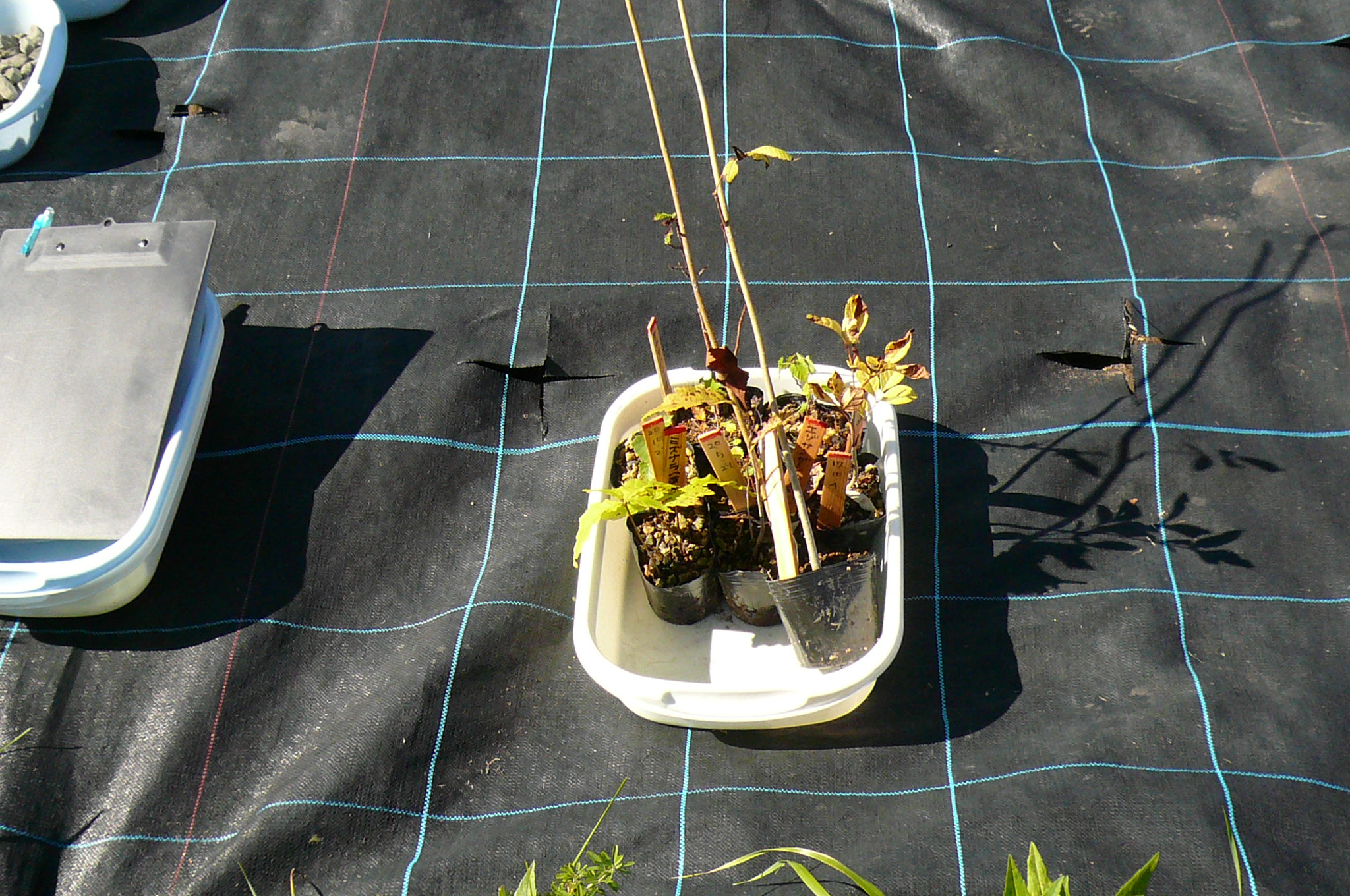L堀束 植樹苗木種類と作業員名記入 |