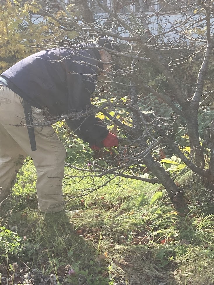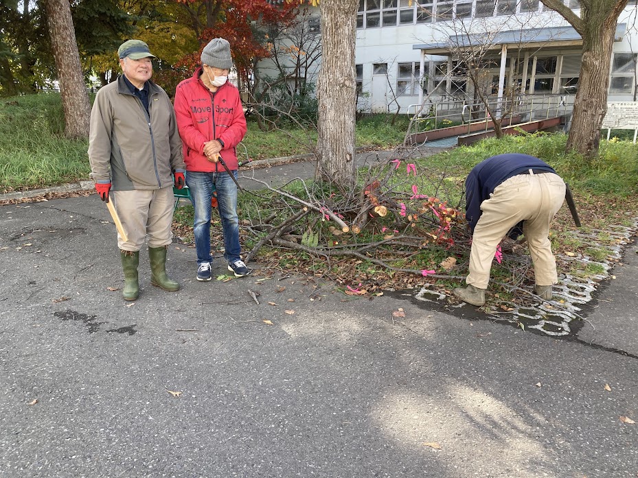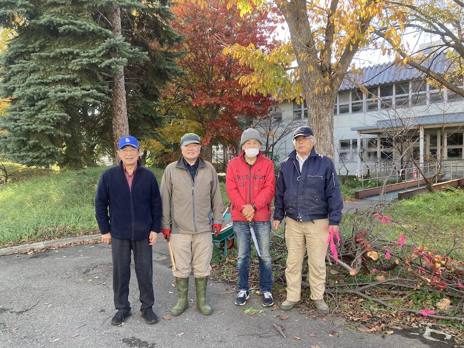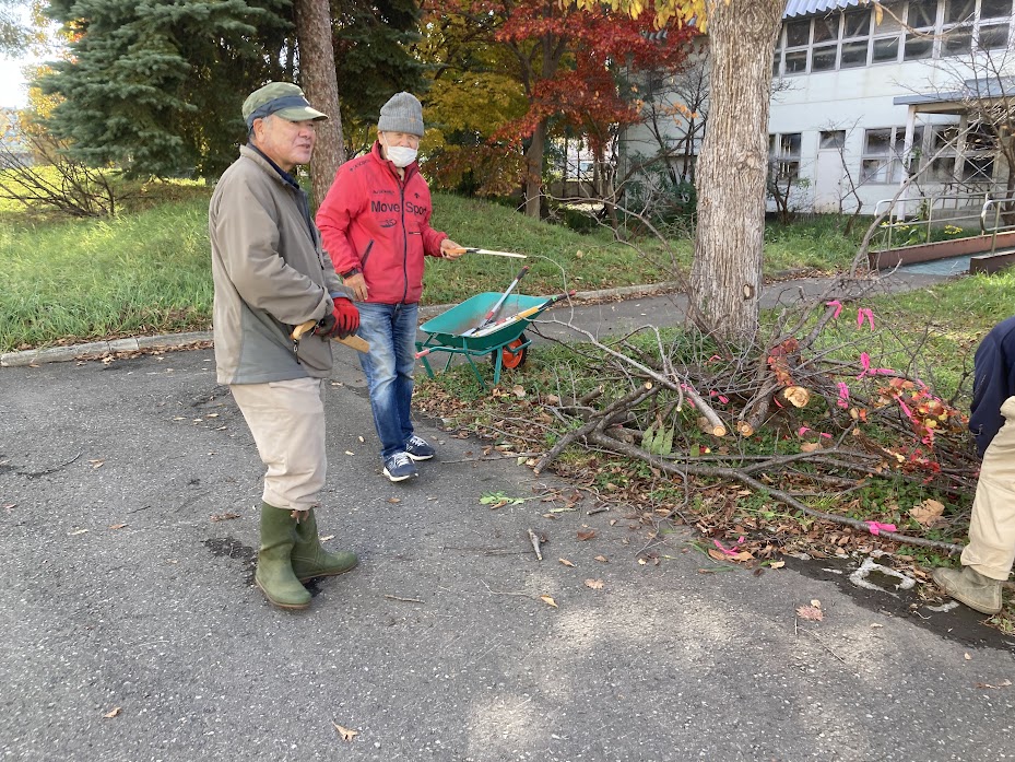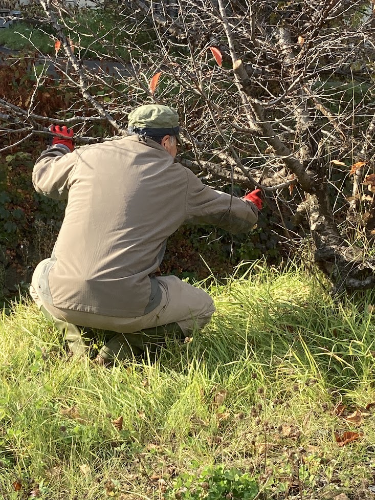 10月30日AM9:00〜10:30寒地土木研究所千島桜の剪定行う。当クラブの樹木医L堀束 恭弘が寒地土木研究所の要請で事前に千島桜の剪定すべき枝に赤テープを結ぶ。当日寒地土木研究所職員7名と当クラブL堀束 恭弘、L比護 了造、L忠海 健三、L工藤 修の4名で小型電動チェーンソー2台と鋸で約150本ほどの枯れ枝の剪定を行う。引き続き枯れ枝を集約整理しACTを終了しました。枯木撤去した後は来春以降適宜クラブで育てる新し苗木を植樹する予定です。