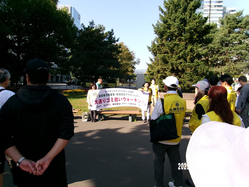 「ゴミ拾いウオーキング」参加記録 10月4日 331-A地区主催首記アクティビティにL忠海・LL忠海・L工藤で参加しました。8:30大通公園1丁目テレビ塔前に集合し9時スタート。丁度「札幌オータムフェスタ」最終日。10時開店なのでそれまでの約1時間、各自ゴミ拾いトングと小さいゴミ袋持ち12丁目まで歩いての清掃活動です。会場内通路は勿論、歩道も清掃行き届いていて想いの外ゴミ少なくやや拍子抜けの感ありましたが観光都市札幌は気持ち良い街でした。参加総数85名。成果は40Lゴミ袋が全4袋、私物万歩計で3,500歩位でした。 |