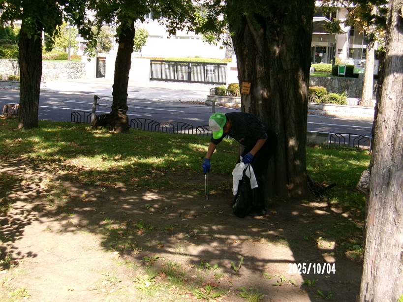 | ゴミ拾い作業(樹木に樹名板取付られています) |