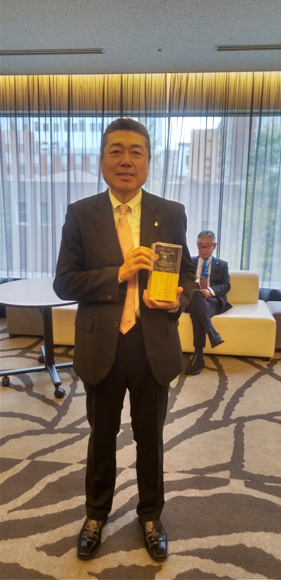 | L山口 Lシン国際会長からIPゴルフトーナメント優勝表彰 |