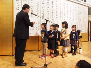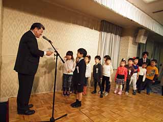 12:00から幼児20名による意見発表がありました。大人であっても200人を超す人の前では思ったことを話すのは難しいものですが、幼児たちは、日頃ご両親やおじいちゃん、おばあちゃんから特訓の成果を十分に発揮して堂々と発表をしました。