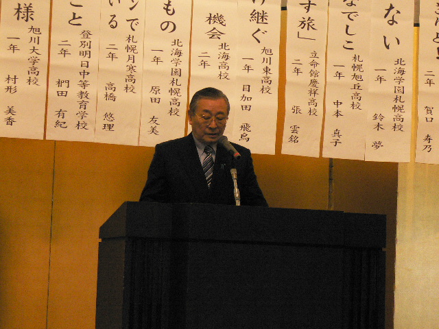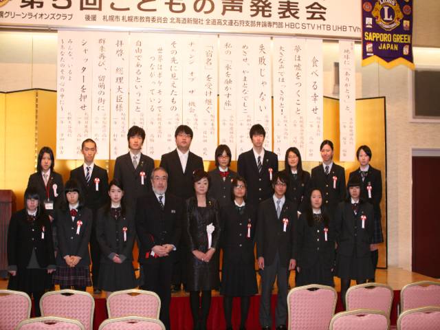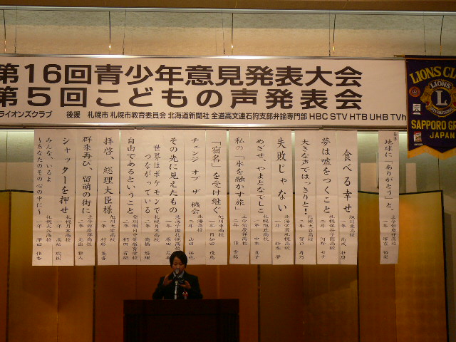 去る2月19日(日)グリーンライオンズクラブとして、最長の記録を誇るアクテビテーである青少年意見発表会が出席弁士16名(1名の基準弁論を含む)の基、成功裏のうちに終ることが出来た。特筆すべきことは、中国からの留学生(立命館慶祥高校2年の張雲銘君)が最優秀賞を獲得したこである。