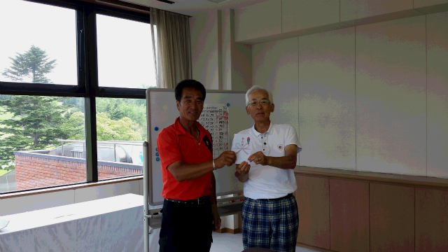 ゲストに北川様をお迎えし、久しぶりのメンバーで楽しみました。あいにくの雨模様でしたが、熱き戦いで大変盛り上がりました。北川様肩が痛いのに、ご参加ありがとうございます。次回もご参加おまちしています。みなさんもゲストをお連れになってください。余談ですが部会長のL竹内さん、なんとエイジシュートを達成していました。飛距離も落ちるどころか、益々伸びているそうです。あっぱれ 68歳ですね。あやかりたいですね。8月は23日の土曜日です。場所はスエーデンヒルズ8時18分スタートです。今回はL長土居さんにご尽力いただきました。ありがとうございます。ご参加宜しくお願いいたします。