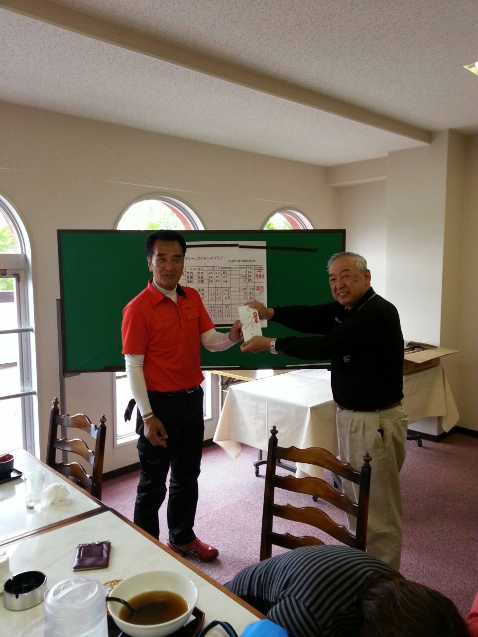 昨日までの天気予報から一遍して5月の緑豊なゴルフ日和でした。9名の参加で和気藹々な例会でした。久しぶりに比護公さんも参加されて、はつらつとプレイされていました。優勝はL岡山さん 準優勝はメンバーのL高橋さんでした。まだまだハンデキャップからみると、来月も優勝ありかも・・・