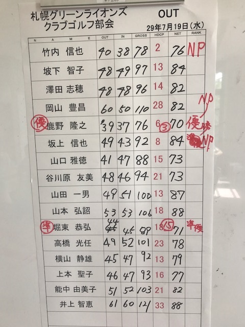 7月ゴルフ部会は羊ヶ丘カントリークラブで開催致しました。晴天に恵まれ楽しいゴルフ部会となりました。