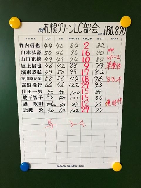 月ゴルフ部会は茨戸カントリークラブで開催となりました。晴天に恵まれ最高の天気となりましたが、昨日の雨の影響か?ラフが粘っこく、とても厳しいコンデションで皆様スコアメイクに苦しむゴルフとなりました。そんな悪条件の中でスコアをまとめたゲストの森さん素晴らしいの一言でした!!優勝は森さん(ゲスト)・準優勝は坂上さんでした。来月は北広島ゴルフクラブでの合同ゴルフコンペとなります!!皆様の奮っての参加をお待ちしております!!
