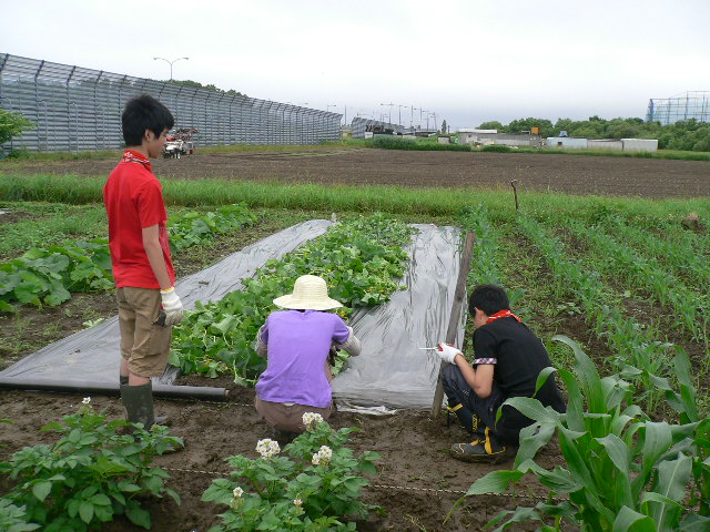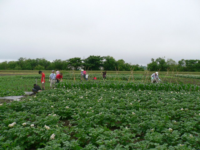 昨夜来の雨で畑はぬかるんでおりましたが、ボーイスカウトの子供たちと父兄は小亀さんの指導のもと、 雑草取り・覆い除去ほか熱心に農作業しておりました。ぼちぼちピーマン、ナスが実ってきましたが残念ながら不作です。