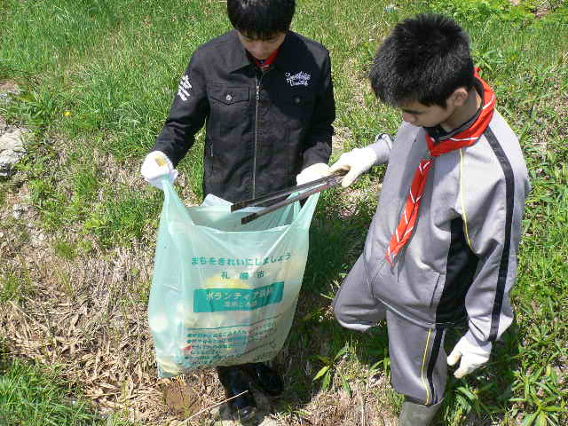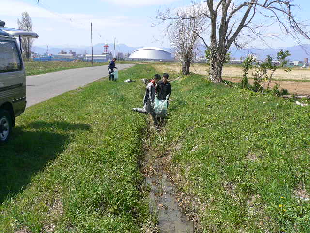 5/13(日)10時 ボーイスカウト札幌第12団が水路のボランティア清掃、タイヤ、TV,ビン・缶・ペットボトルほか