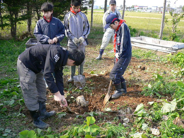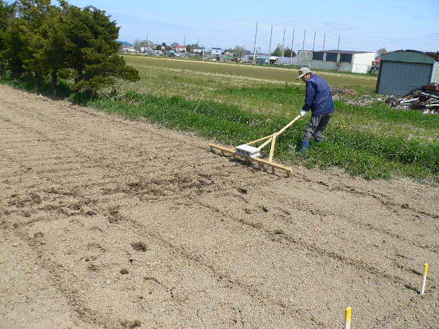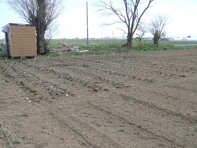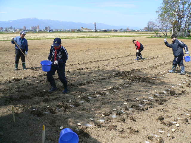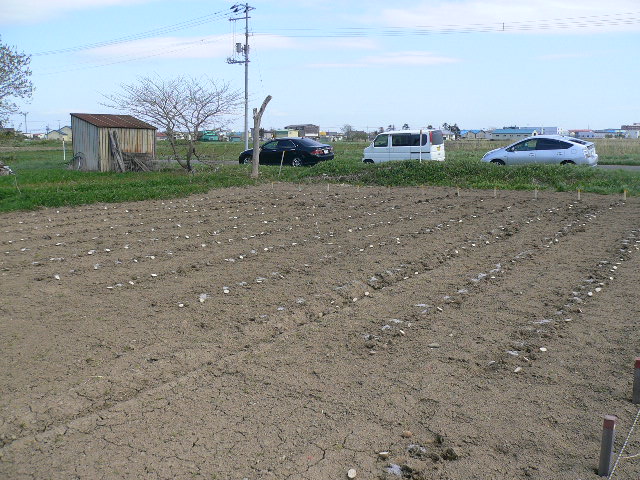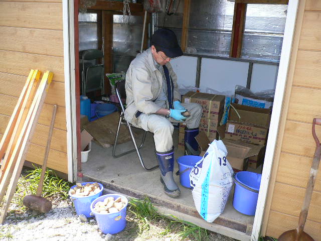 L忠海、L新松、杉元さん、L比護とボーイで男爵芋の植え付け、一部まだぬかるんでましたが如何にか2時ごろには終わり。