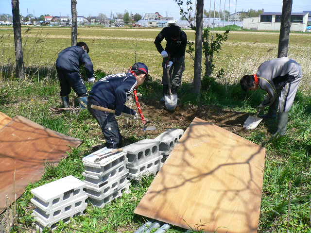沢山の不法投棄ごみを回収。その後堆肥を作る場所をボーイが施工。