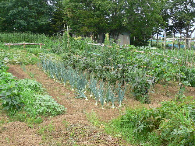 | L比護 了造 玉葱の茎自然に折れて収穫です |