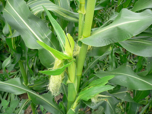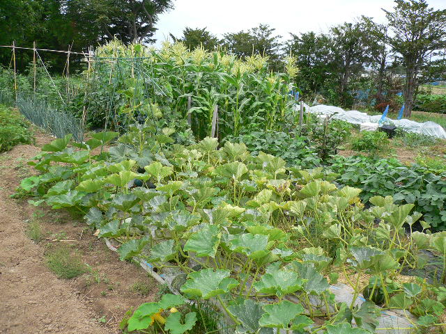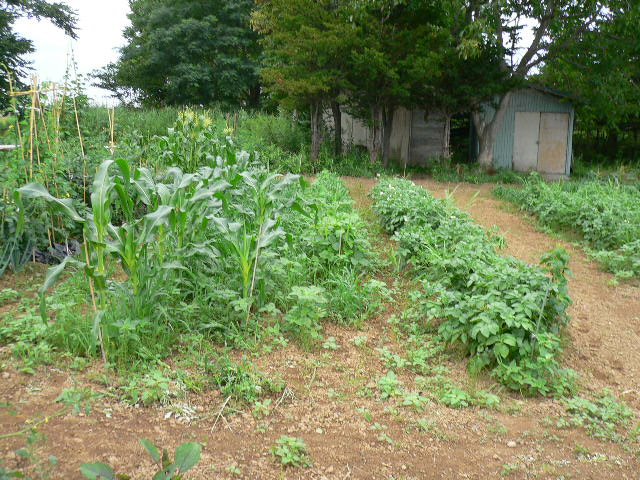 上篠路 トウモロコシはお盆過ぎには食べれそうです。枝豆の実も付き出しました。