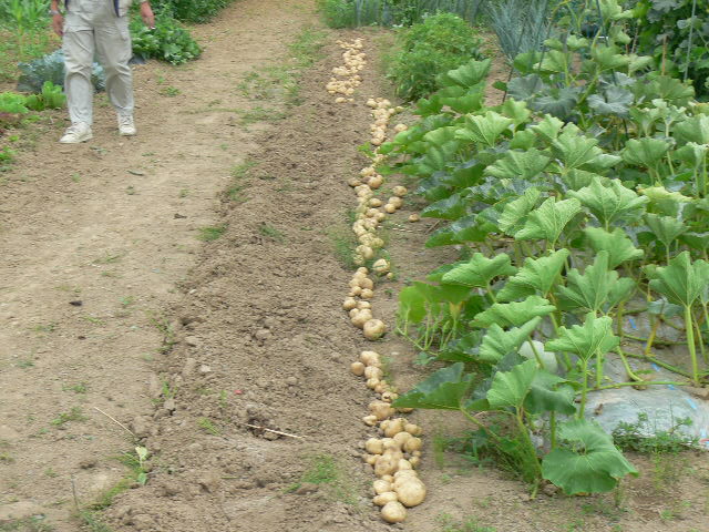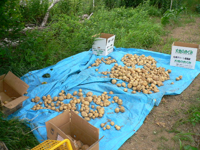 丘珠の芋掘り開始、大きな男爵が3割ほどあり昨年の茨戸より出来が好いようです。
