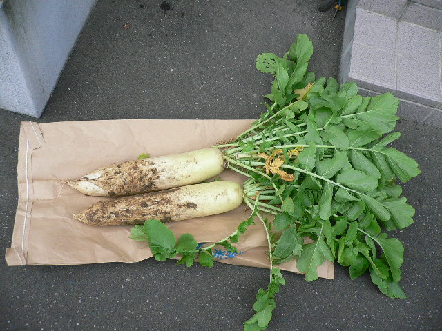 10月3日 上篠路農園地主さんのアドバイスで、有機質肥料鶏糞を畑全面に来年の収穫を楽しみに撒布しました。 10月22日 丘珠農園を大型機械で深く耕す予定ですが、雨多く未だ出来ない状態です。 写真の見事な大根 隣畑のおばちゃんからの頂き物です。来年はせめてこの半分位の大根収穫するよう研究努力します。 金銭・労力・アドバイス等 ご支援宜しくお願い致します。