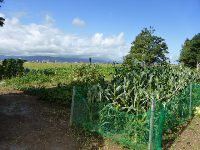 農園の作物も順調に生育し収穫を待つばかりです。と言いたいところですが、今年は雨が少なくトウモロコシは生育不足で今一で、プロの農家もLサイズは少ないようです。今年初めて種から苗を作り定植した作物で⇒◎はトマト、ミニトマト、南蛮、ピーマン、キャベツ、南瓜、プリンスメロン、胡瓜×はパプリカ、絹さや。接ぎ木苗購入は西瓜、茄子。9/1のACT「森の教室」へ僅かですがトウモロコシと大根他を提供予定です。
