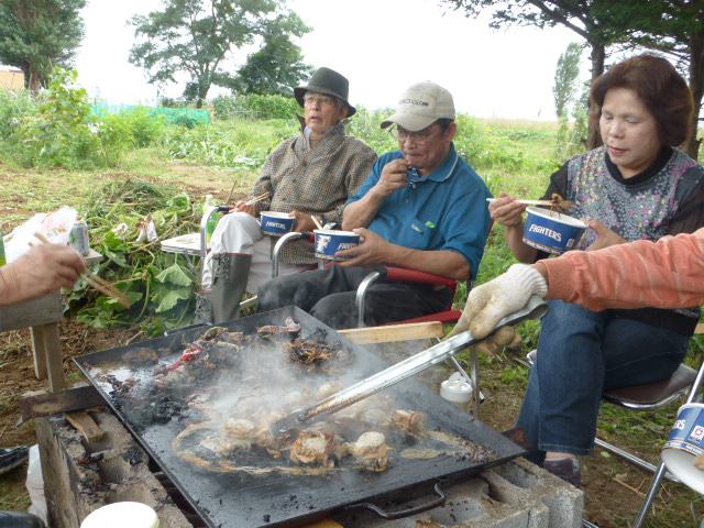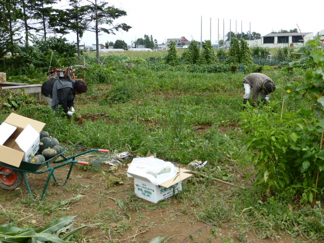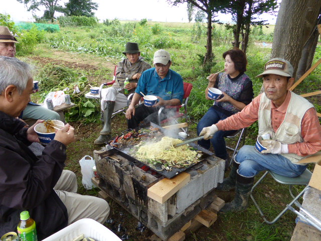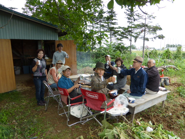 8月下旬から長雨が続き4日には45mmの降雨で農園には水溜りが出来ましたが、7日(土)収穫には絶好の天気となり、「グリーン農園収穫祭」と称し農園の運営にご支援賜った「援助会員L」と共に男爵、北あかりの芋掘り・トウモロコシもぎ・枝豆の葉と茎除き・南瓜採り・雑草抜きと整理、そして収穫物の箱詰めを行いました。今年は初めて種から苗を作り、これも今年作った温室で育て畑に定植しましたが如何にか収穫でき農園部会会員一同喜んでおります。お昼はL山田 一男からのノンアルコールビールで乾杯、そしてL忠海 健三提供のジンギスカン・ホルモン・麹牛肉・手羽先、L山田 一男提供の帆立の鉄板焼きを大変美味しく食し、締めに食べた農園の玉葱・ピーマン・唐辛子・茄子入りのソース焼きそばは意外と好評で完食。 その後、手分けし援助会員の所へ収穫物をお届いたしました。今シーズン皆様のご支援に感謝申し上げます。