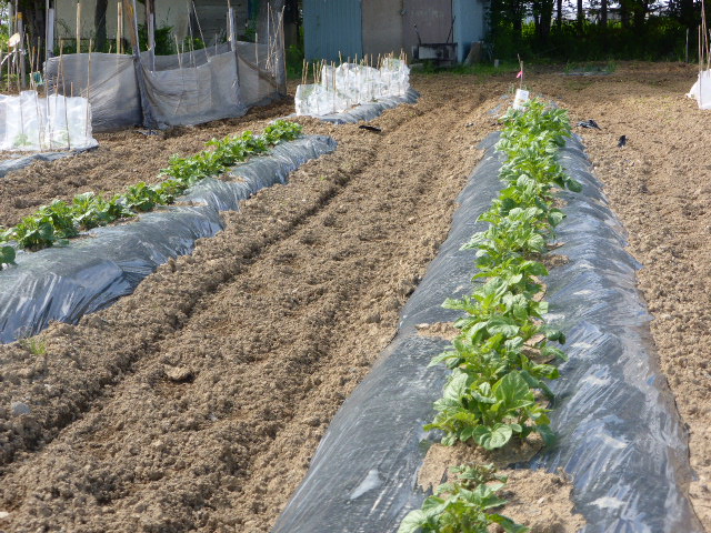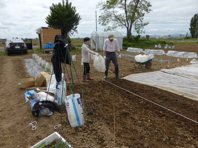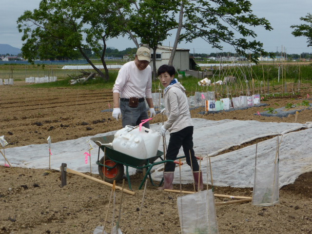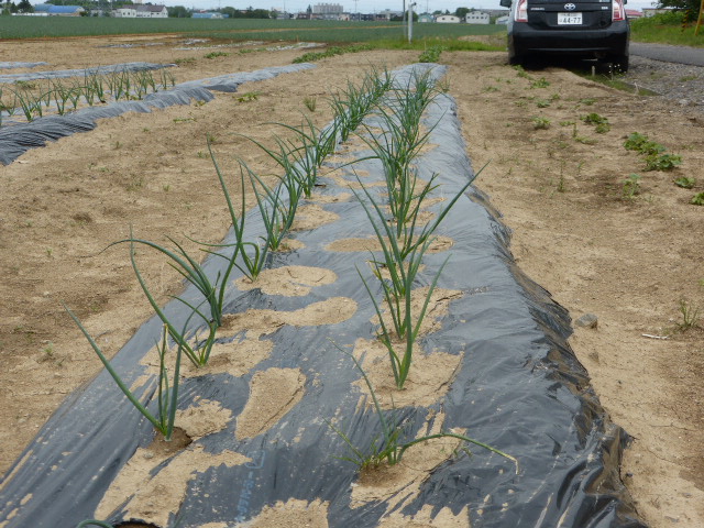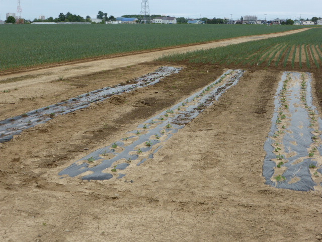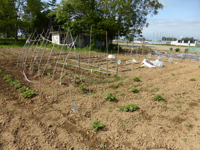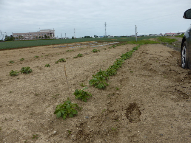 6/7日曜日、あまり風強くなく気温も農園作業に適し、農園部会の各Lがそれぞれ植え付けを行いました。上篠路は今日ですべて定植完了、作付終わった作物は順調に育っております。丘珠も各畑植え付けがほぼ終わりました。玉葱・メークインなど良く育っております。今年から畝幅を広げたので小型ローターで草取りができ整然とした畑になっております。