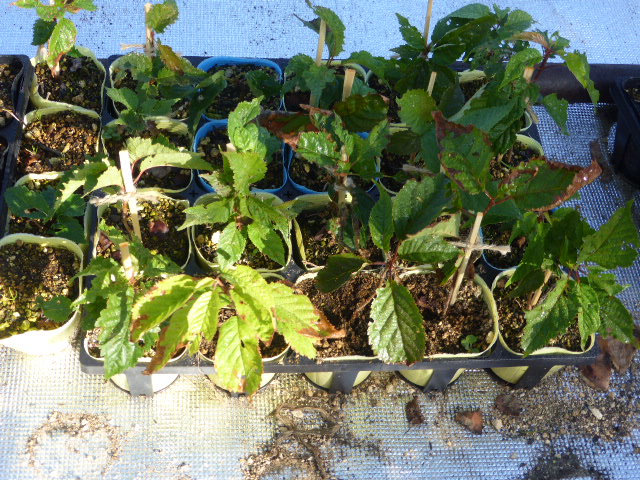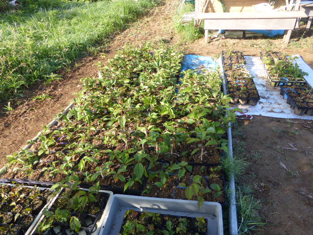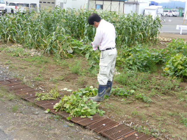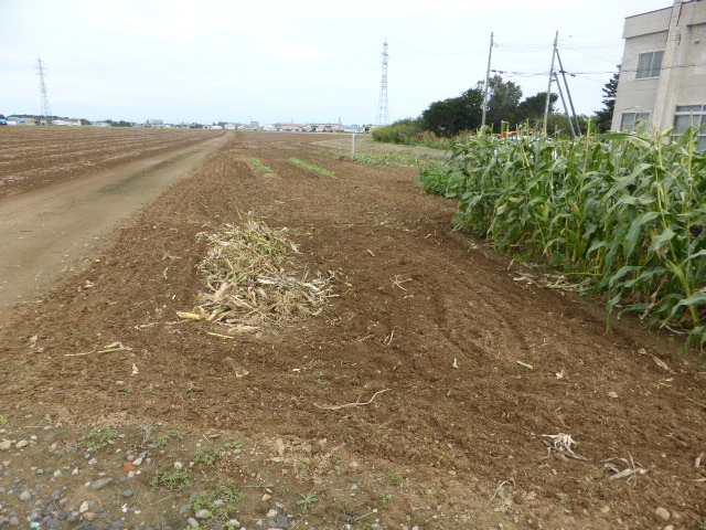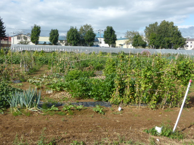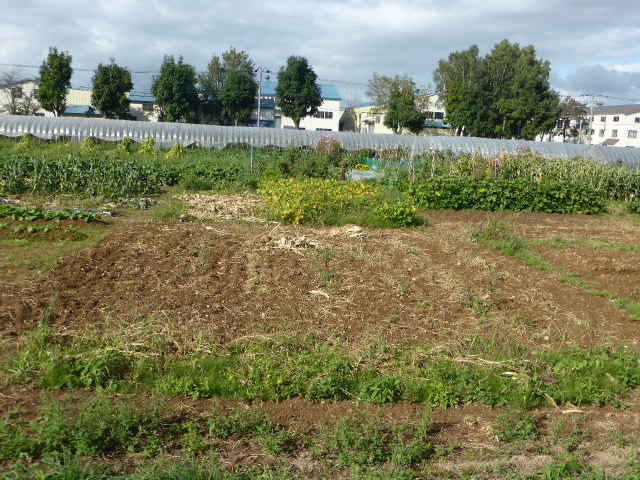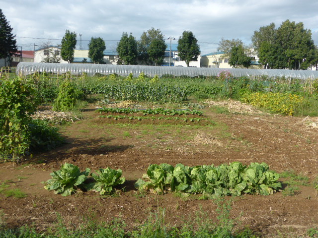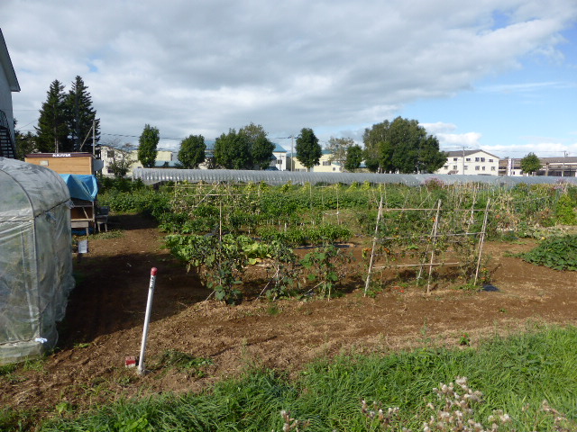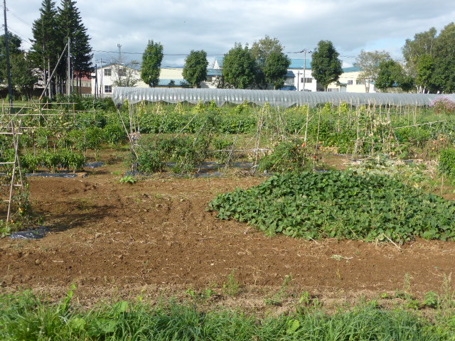 今年から始めた北丘珠農園は秋ナス・唐辛子・ピーマン・サツマイモ・ミニトマト・トウモロコシの一部と、今生育中の白菜・秋大根を残すのみです。温室の胡瓜・トマトはもう少し収穫できそう、L忠海 健三のサツマイモかなり大きく葉を広げており大きな物期待できそうです。 ※北丘珠で保管管理してる千島桜 9cmポットは10月16日(日)岡村教授の依頼で新川(河川管理者:札幌市)右岸桜並木に約40本移植します。来期頒布予定の12cmポットは土を補充しポットトレーに入れ越冬させます。 |