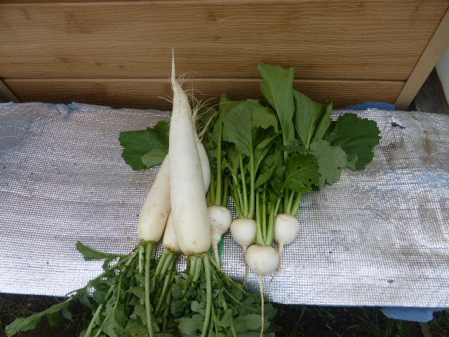| 6月30日試し収穫春大根とカブ |
