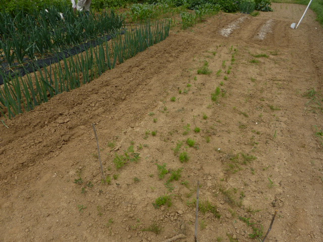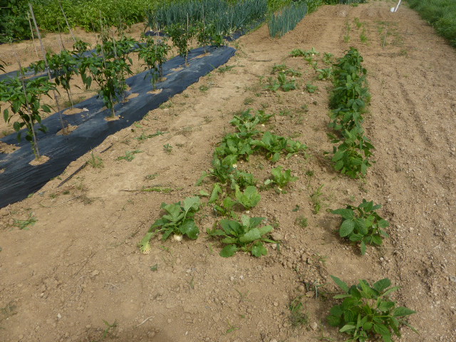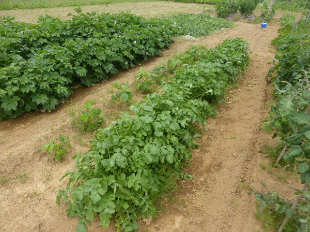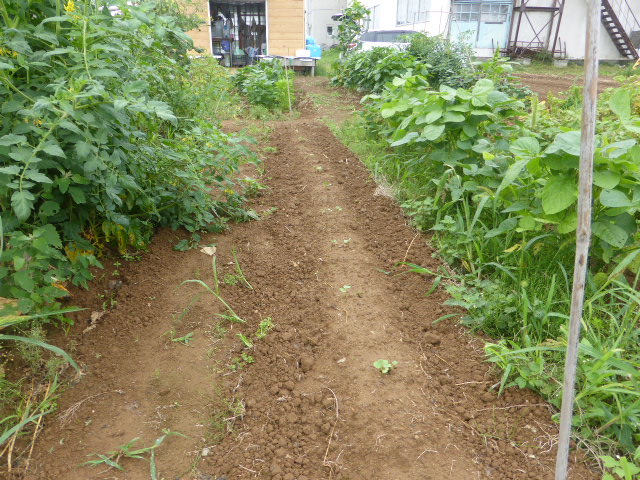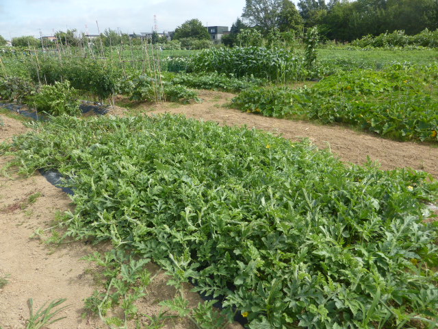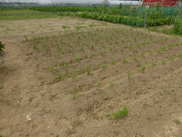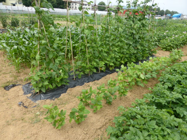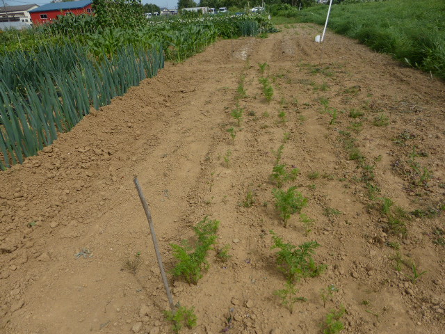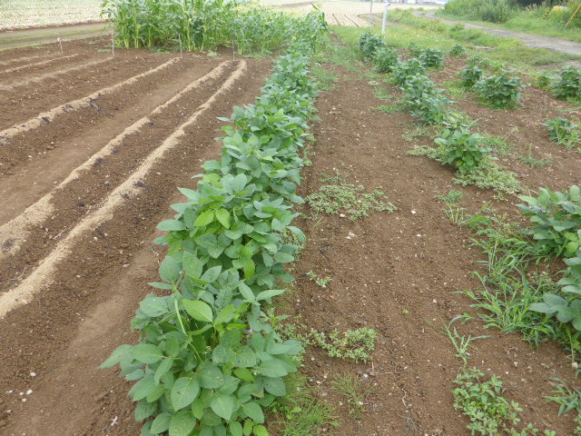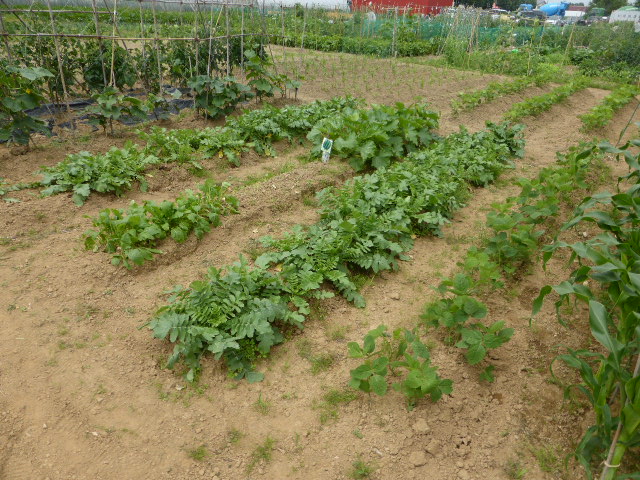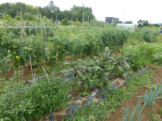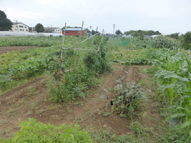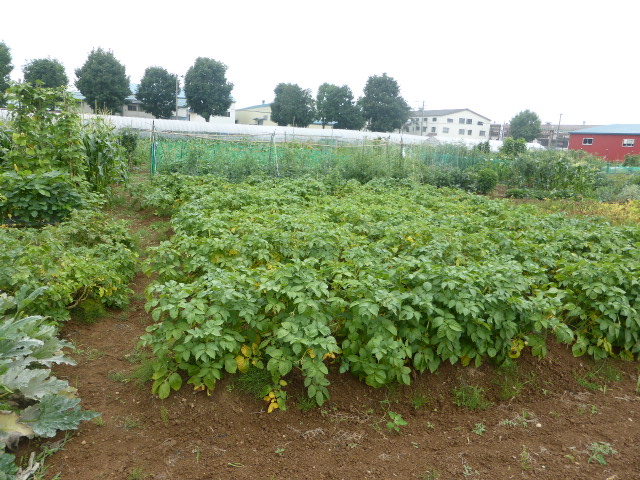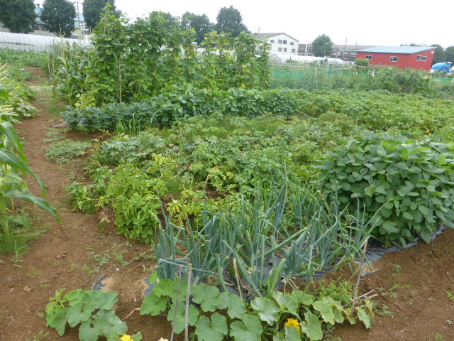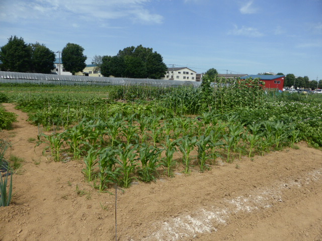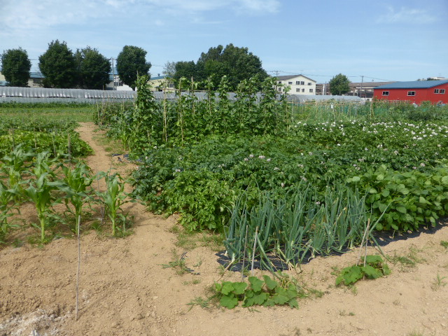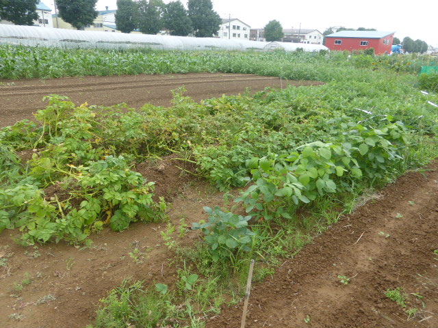 7/19蝦夷梅雨が漸く終わり気温も高くなり、各作物は生育挽回中。篠路春大根は収穫終わり出来は良かった。7/26カブ終わり、芋試掘でき良さそうです。人参発芽、玉葱順調。雨がほしい。8/10待望の雨、3週間以上晴天が続き各作物に異変が起きてます、トウモロコシの雌穂(実のなる部分)があまり出来ず収穫半分以下?各作物の収量は例年を全て下回ってます。秋大根この雨で発芽一安心、温室苗の白菜定植早過ぎたかな?枝豆のさやが出来てますが実入りが非常に悪い、9/2「森の教室」の提供?です。今後の天気に期待しますが難しいと思います。
