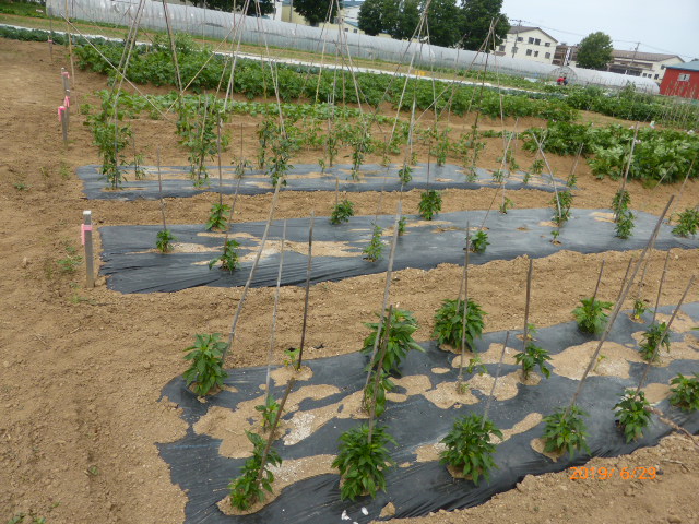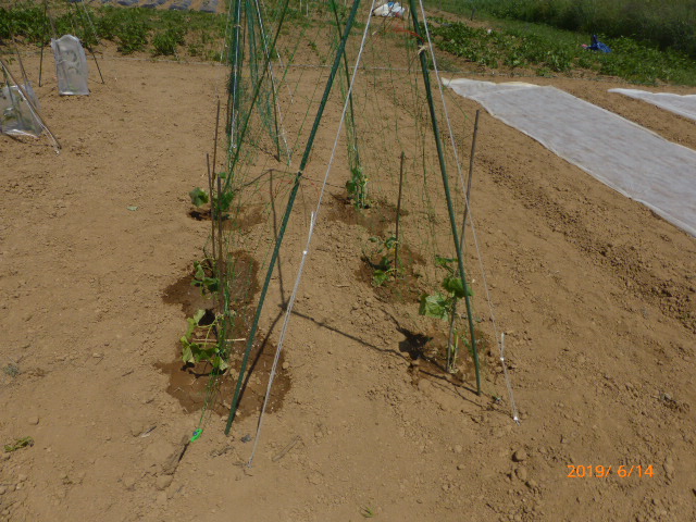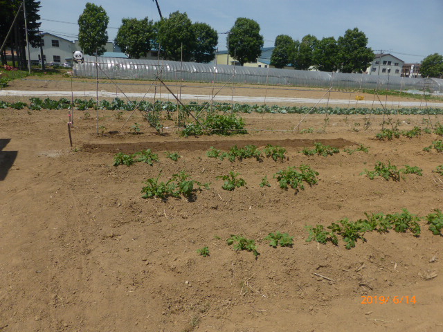 カラカラ天気が続いておりましたが、若干お湿りがあり一息。L岡田 聰農園公休日にスタッフ共に1日で植付終わり一安心。全体的に生育は遅れぎみですが、絹サヤ・胡瓜の収穫が始まり、その後続々と続きそうです。毎年食材を提供してる8月25日の「森の教室」に芋・玉葱は如何にか間に合いそうですが枝豆・トウモロコシ・人参などは望み薄です。