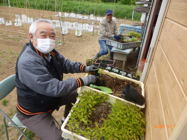 昨年採取したチシマサクラ実が越冬し立派な苗となり6/6,7L工藤 修・L岡山 豊昌・L比護 了造で450本ほどポットに移植、昨年の苗木と合わせ約850本の在庫あり。来年市民に頒布しないと保管場所パンクです。1日も早いコロナの終息を願っております。 |