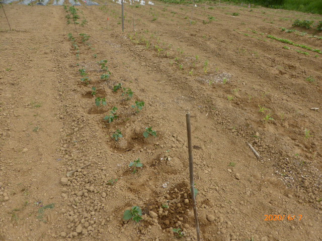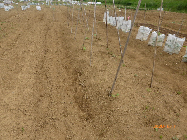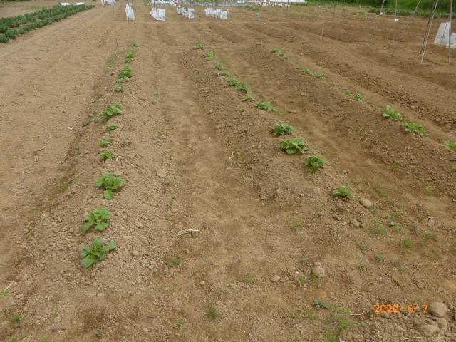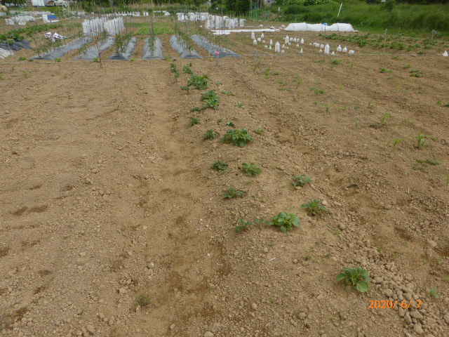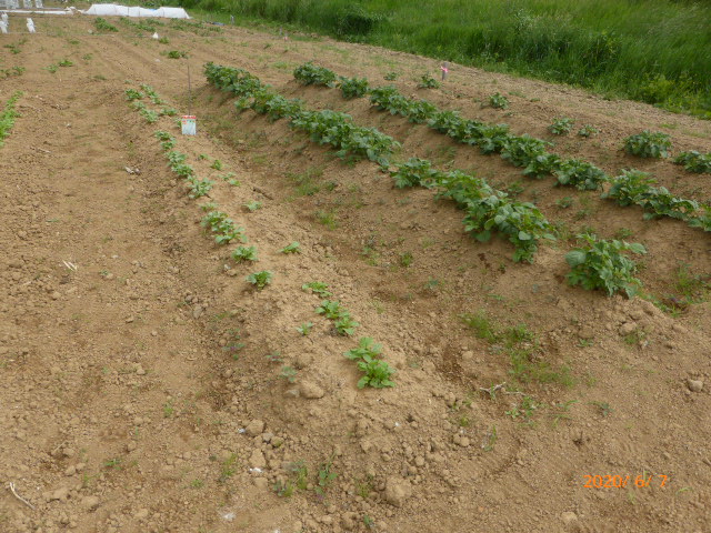 6月に入り如何にか晴天が続いておりますが気温は低め、作物の生育はいまいち遅れ気味です。大きな雨降らず畑カラカラまとまった雨がほしい。