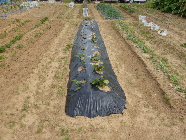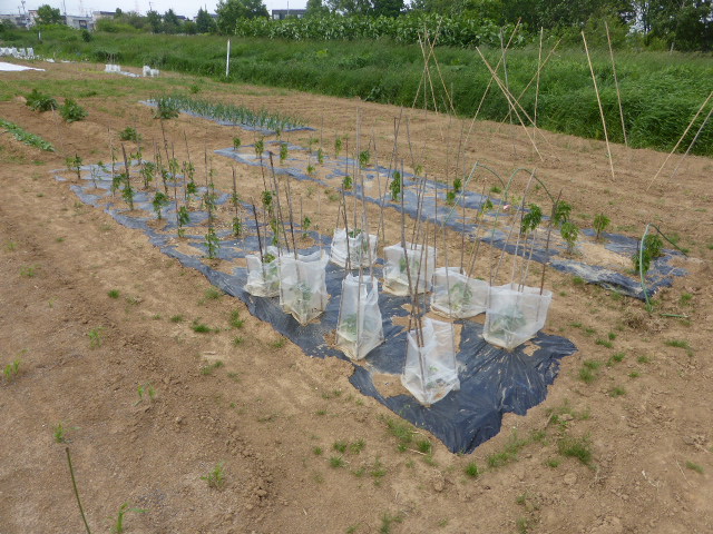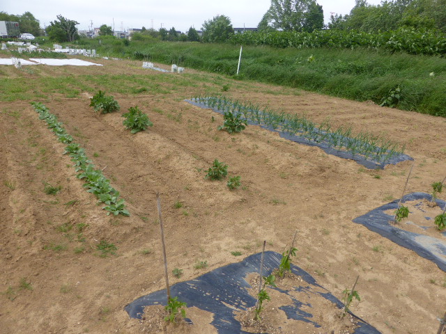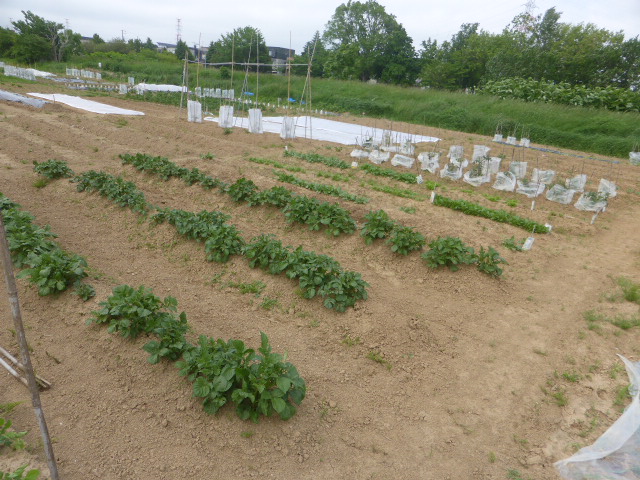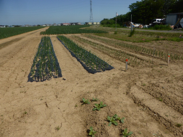 5月の連休から月末まで雨と低温が続き苗物の生育よくありませんが、玉葱・ジャガイモはそれなりに育っております。作付は昨年とほとんど同じですが、L忠海 健三が薩摩芋に挑戦、ネズミの食害に遭わなければ豊作期待できそうです。現在トウモロコシ定植終わり枝豆の芽出し中です。6月4日の強風(最大瞬間風速24.8m)でビニール温室が約100m空中遊泳し富樫農園端の水タンクに着地、ハウス全壊です。他人の畑作物・車などに被害無かったのがせめてもの救いです。曲がった部材を治しながら如何にか組み立ております。