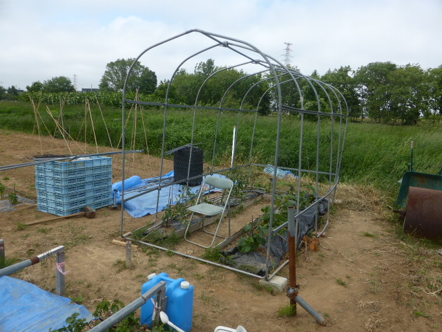 6月8日温室組み立て中 |