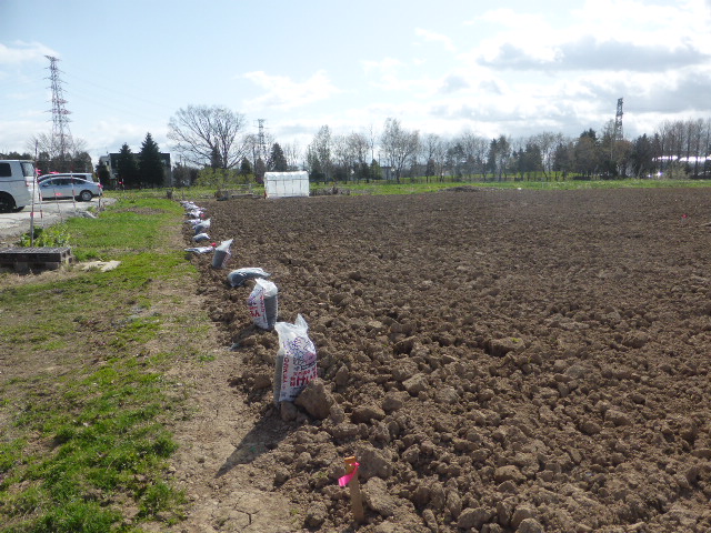 今年もグリーン農園オープンしました。丘珠は昨年までの畑が100mほど北側に場所変更。荒起こしの段階で鶏糞を丘珠に20袋、篠路に15袋撒布する。連休明けにはジャガイモ・玉葱の作付け終わり、13日(金)に2mmほどの恵みの雨降